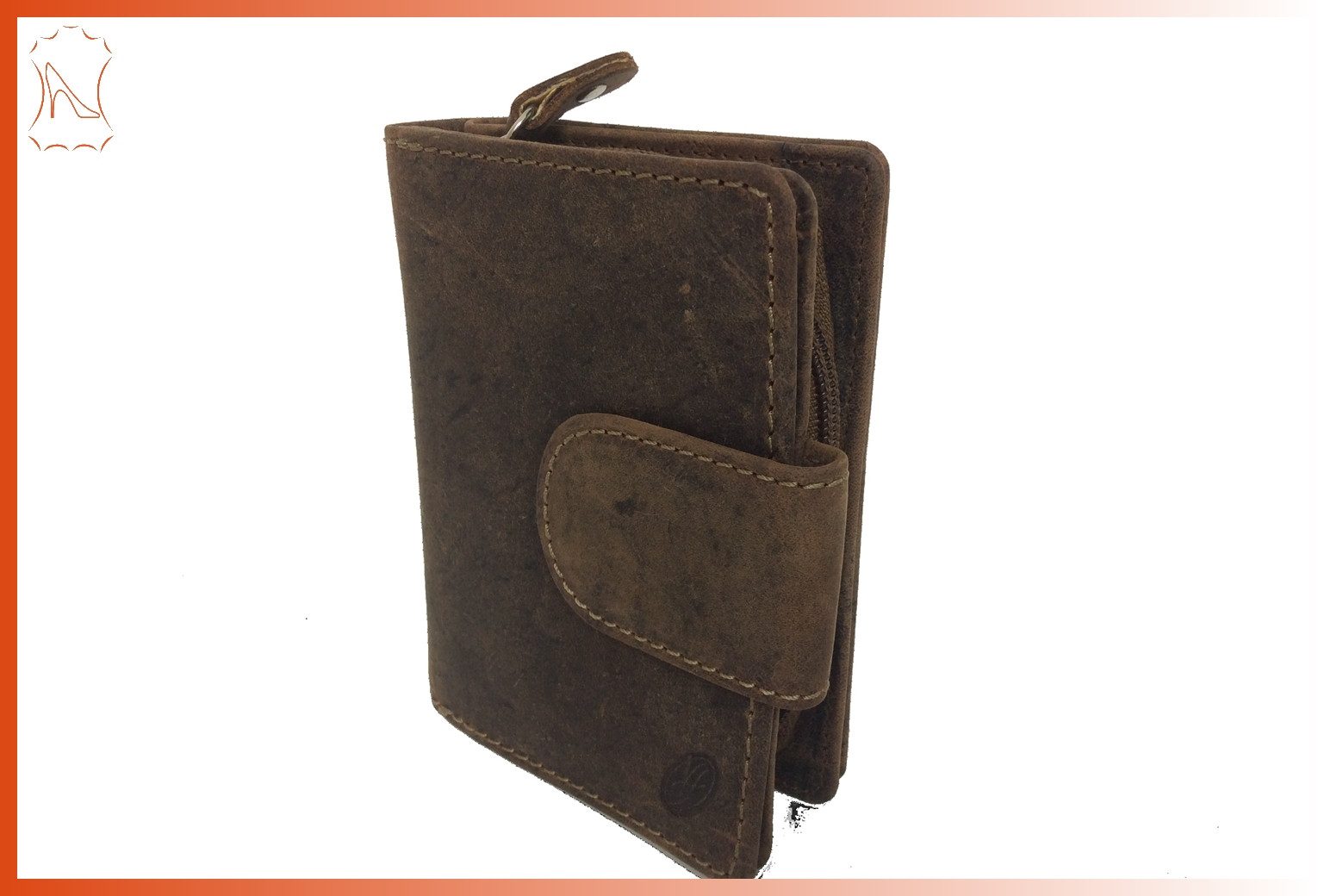 DF Geldbörse braune Fettleder Börse Reißverschluss Münzbörse Leder