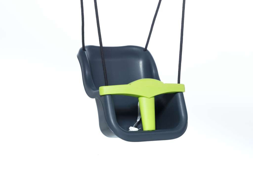 Der anthrazitfarbene Kunststoff-Babysitz mit lindgrünem T-Bügel ist das perfekte, kompatible Zubehör für Ihre BERG PlayBase und bietet stundenlangen Schaukelspaß!