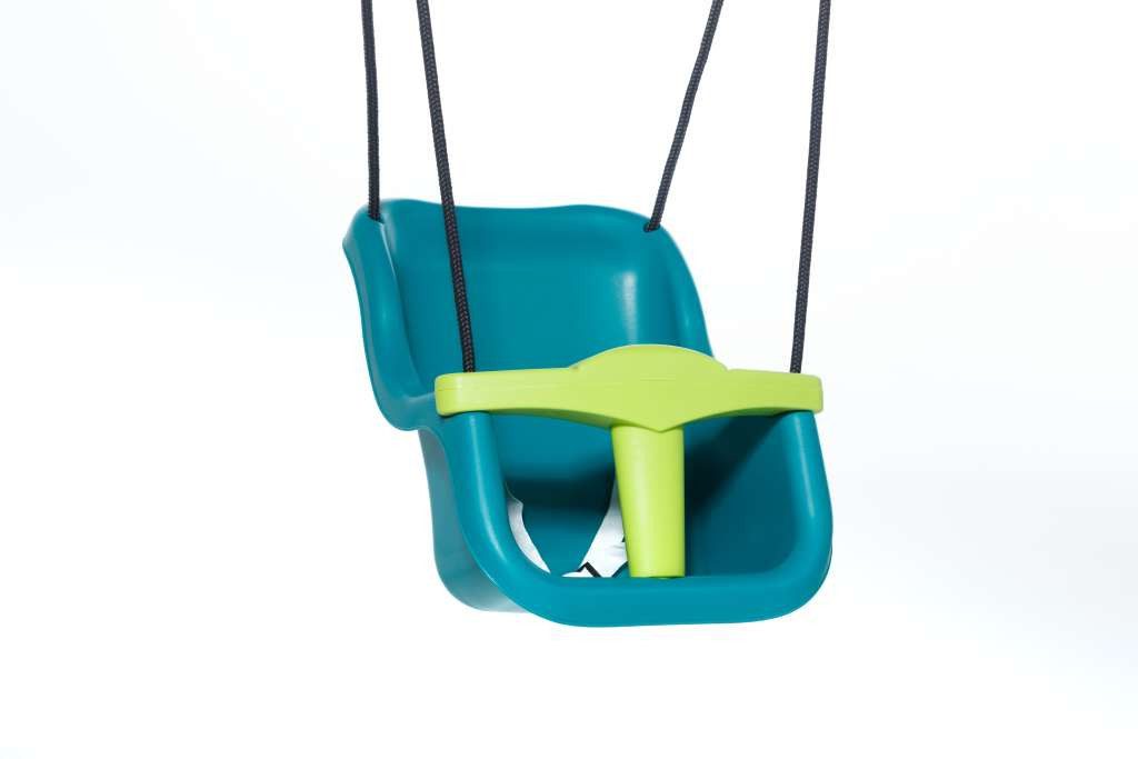 Der türkisfarbene Kunststoff-Babysitz mit grünem T-Bügel ist das perfekte, kompatible Zubehör für Ihre BERG PlayBase und bietet stundenlangen Schaukelspaß!