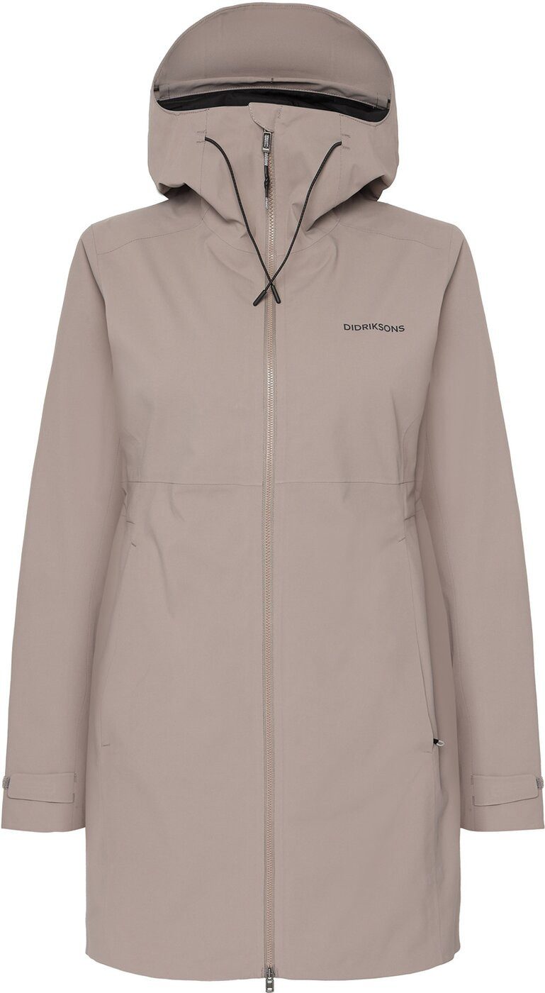 Didriksons Parka Bea ist ein softes, sportives Modell, das sich für die City ebenso gut eignet wie für Spaziergänge am Wasser. Dank durchgehend versiegelter Nähte ist der Parka zu 100 % wasser- und winddicht. Hergestellt aus weichem Polyester mit einem matten Finish. Klassischer Parka mit femininem Schnitt und Kellerfalte am Rücken für eine gute Passform. Zwei Vordertaschen und eine Innentasche mit Reißverschluss. 2-Wege-Reißverschluss mit Knopf innen für zusätzliche Belüftung. Die angeschnittene Kapuze, Taille und Ärmelbündchen sind verstellbar. Reflektierende Details an den Reißverschlussschiebern und Logos vorne und hinten. PFC-freie, wasserabweisende Imprägnierung.