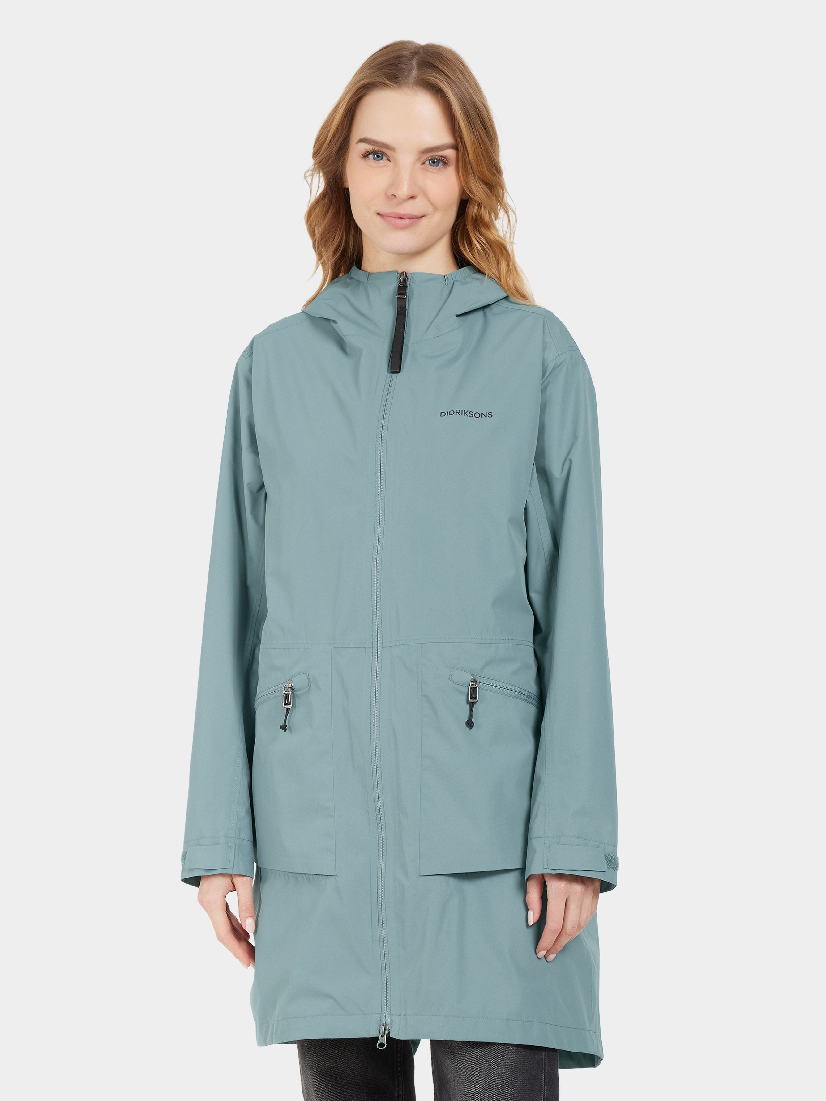 Eliana ist ein leichter Sommerparka, der Stil und Funktionalität für Outdoor-Aktivitäten vereint. Er ist wind- und wasserdicht, hat versiegelte Nähte und besteht aus einem atmungsaktiven Material, das perfekt für wechselnde Wetterbedingungen ist. Der Parka hat eine lockere Passform und eine verstellbare Taille mit Kordelzug für eine individuelle Silhouette.