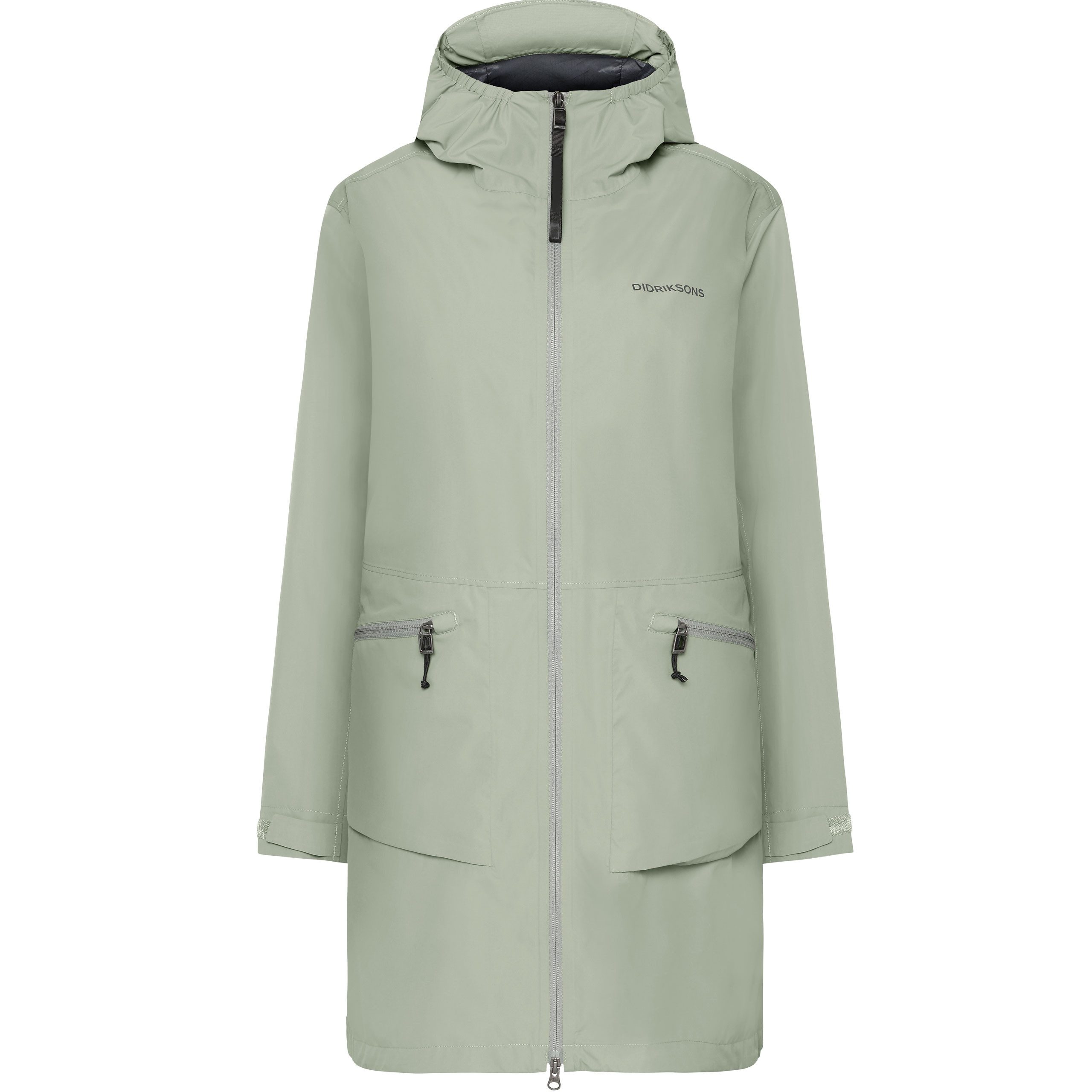 Die feste Kapuze kann für zusätzlichen Schutz verstellt werden, und die verstellbaren Ärmelbündchen mit Klettverschluss sorgen für einen bequemen Sitz. Der Parka hat einen Zwei-Wege-Frontreißverschluss für gute Belüftung und Bewegungsfreiheit. Praktische Reißverschlusstaschen an der Außen- und Innenseite bieten sicheren Stauraum für Ihre Habseligkeiten. Reflektierende Details, darunter ein Logo, erhöhen die Sichtbarkeit in der Dunkelheit.