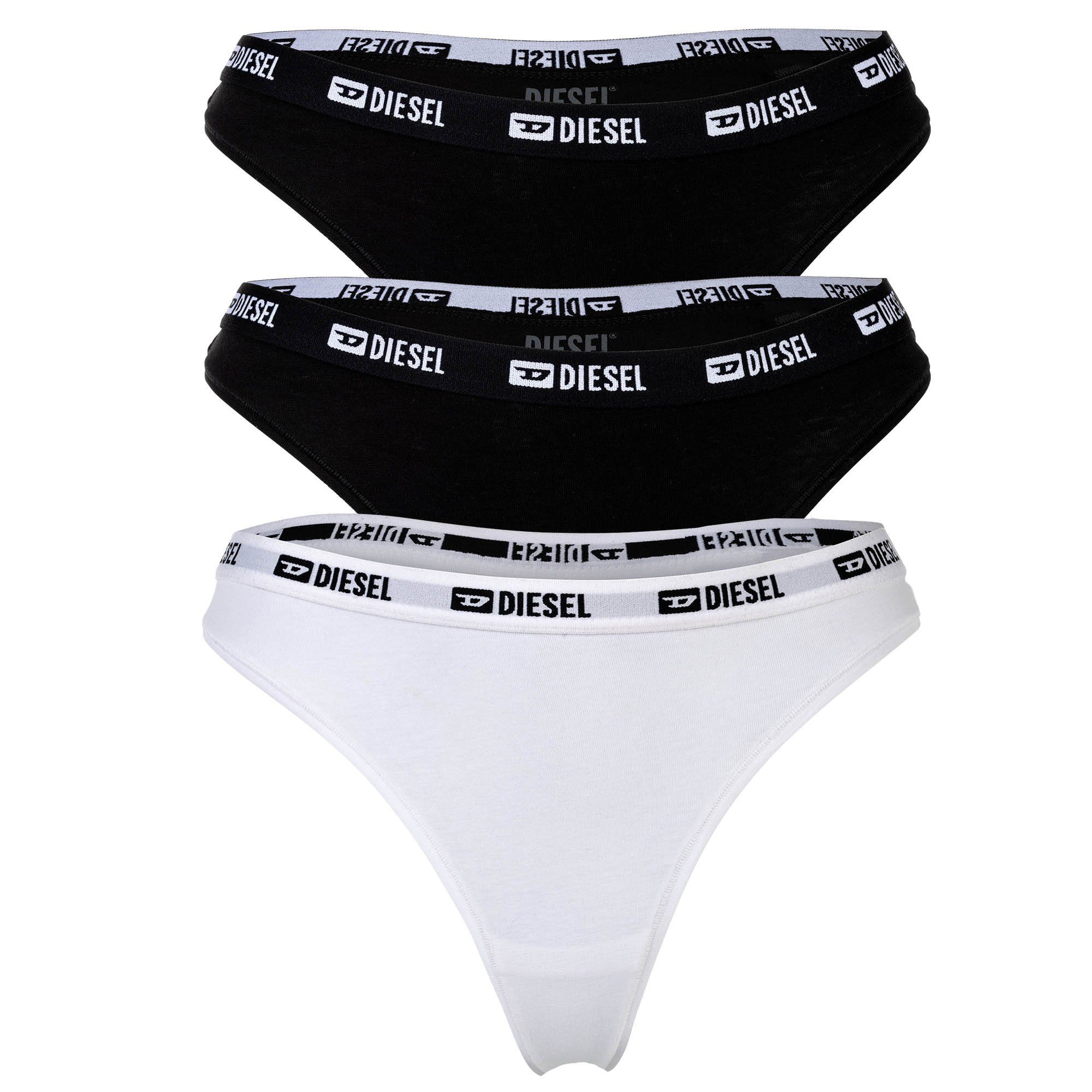 Drei einfarbige Strings für Damen von der Marke DIESEL. Weiche Stretch-Baumwolle, DIESEL-Logo im Stretchbund, perfekte Passform für optimalen Tragekomfort.