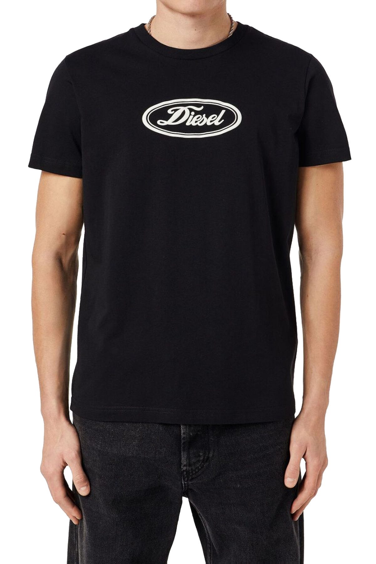 Slim-Fit-T-Shirt. Es ist aus Baumwolljersey gefertigt und mit einem Vintage-Diesel-Logo auf der Vorderseite bedruckt.