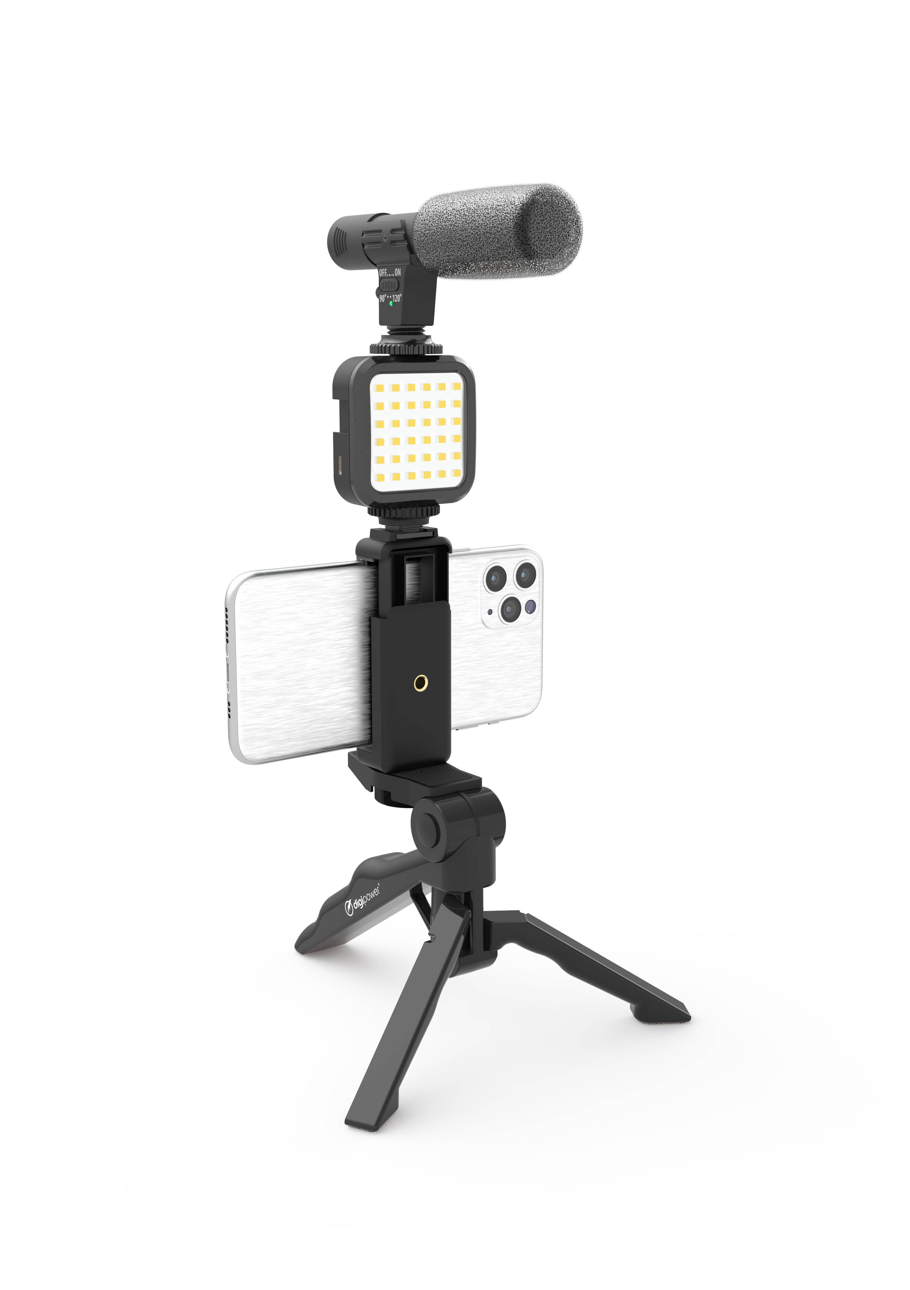 Lieferumfang | LED-Videoleuchte Mikrofon Handy Halterung Handgriff / Mini-Stativ |