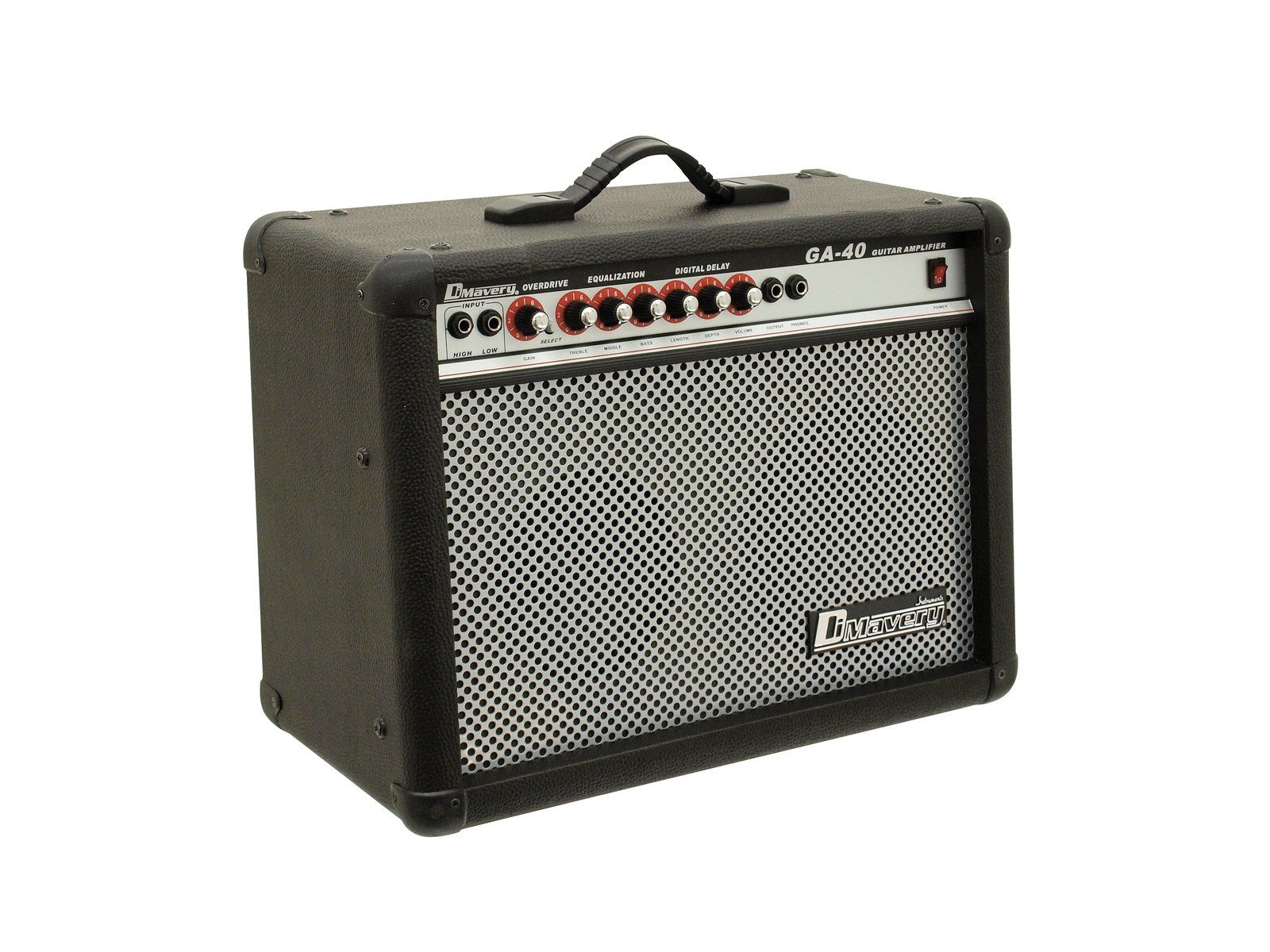 DIMAVERY GA-40R E-Gitarren-Amp 40W 40-W-Gitarrenverstärker mit digitalem Halleffekt Gitarreneingang High/Low mit Gain-Regler Zuschaltbare Overdrive-Funktion Halleffekt regelbar in Длина und Intensität Ausgang zur Signalverarbeitung mit weiteren Geräten Stabiles Holzgehäuse mit Kunstlederbezug, Kunststoffecken, Tragegriff und Gummifüßen Lieferumfang 1 x Verstärker, 1 x Bedienungsanleitung Technische Daten Stromversorgung: 230 V AC, 50 Hz Gesamtanschlusswert: 85,00 W Ausgangsleistung: 40 W RMS Stromanschluss: Festes Stromanschlusskabel mit Schutzkontaktstecker Frequenzbereich: 20 - 15000 Hz Geräuschspannungsabstand: >70 dB Steuerelemente: Lautstärkeregler Anschlüsse: Eingang: 2 x 6,3-mm-Klinke (unsym.) Ausgang: Kopfhörer über 1 x 6,3 mm Klinkenbuchse (stereo) Einbauversion Ausgang: Line über 1 x 6,3 mm Klinkenbuchse (stereo) Einbauversion Equalizer: Master: Regler 3-Band Eingangsempfindlichkeit: 20 mV Lautsprecher: 1 x 6" Tieftöner 1 x 8" Tieftöner Lautsprechertyp: Gitarrenlautsprecher Farbe: Schwarz Maße: Breite: 49 cm Tiefe: 24,5 cm Höhe: 38 cm Gewicht: 10,00 kg