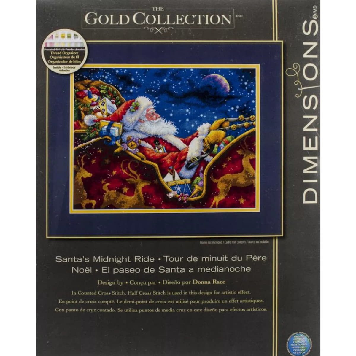 Dimensions Kreuzstich Stickpackung mit Zählmuster "Gold Collection, Mitternachtsfahrt des Weihnachtsmanns"