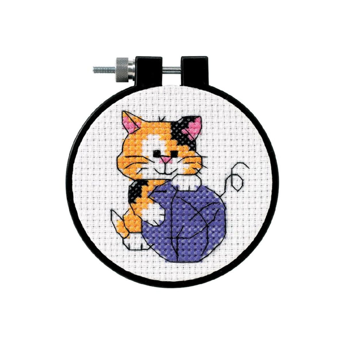 Dimensions Kreuzstich Stickpackung mit Zählmuster und Stickrahmen "Learn a Craft, Süßes Kätzchen"