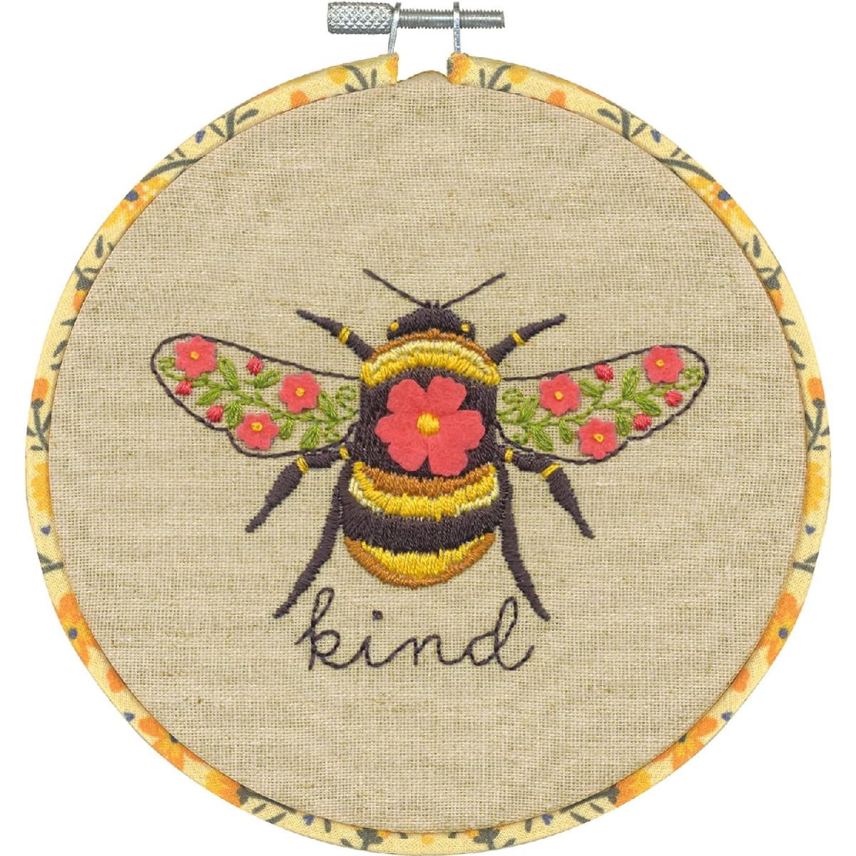 Dimensions Plattstich Stickpackung Bild gedruckt "Bee kind"
