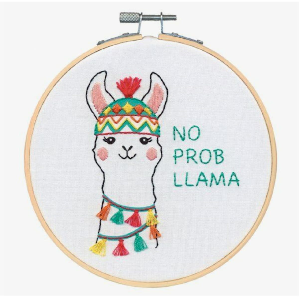 Dimensions Plattstich Stickpackung Bild gedruckt "No Probllama"