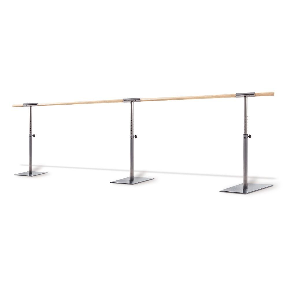 Bei der höhenverstellbaren mobilen Ballettstange "Isa" sind in den beiden Sockeln je 4 bodenschonenden Gummirollen montiert, mit denen Sie die Ballettanlage leicht bewegen können. Die Ausführungen in 4 m und 5 m Длина steht auf 3 Ständern. Die Höhe der Ballettstange variieren Sie einfach mittels einer Sterngriffschraube. Die Höheneinstellungen sind von 1-14 durchnummeriert, so dass Sie an beiden Standfüßen schnell die Höhe übereinstimmend einstellen können.
