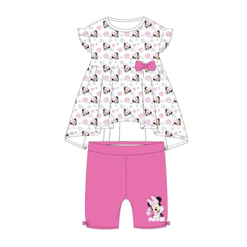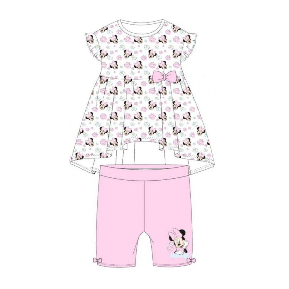 Unser entzückendes Baby-Bekleidungs-Set mit Minnie Mouse Motiv ist perfekt für kleine Fashionistas! Das Set besteht aus einem kurzen Oberteil und einer kurzen Hose in verschiedenen Farbkombinationen. Das Oberteil zeigt Minnie Mouse in einem Blumenfeld, verziert mit einer hübschen rosa oder pinken Schleife, passend zur Hose. Die Hose ist einfarbig und mit einem Minnie Mouse Motiv am linken Bein verziert.
