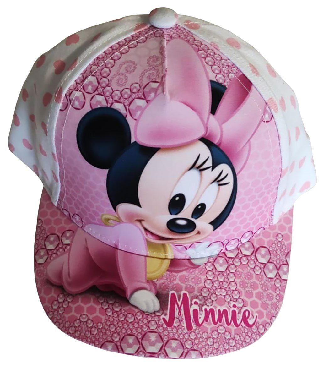 Die liebreizende Minnie Maus ist aus der Welt von Walt Disney nicht mehr wegzudenken und hat seit Ihrem Bestehen Millionen von Herzen erobert. Sie ist bekannt für ihre fröhliche und hilfsbereite Art und vor allem für ihre tiefe Liebe zu ihrem treuen Wegbegleiter Mickey Maus. Zusammen mit Mickey hat sie schon viele unzählige Abenteuer bestanden und kann dadurch auf eine wachsende Fangemeinde zurückblicken. Aufgrund ihrer weltweiten Bekanntheit ziert die hinreißende Maus mittlerweile unzählige Textilwaren, wie auch diese Schirmmütze. Als Geburtstagsgeschenk, zu Ostern oder einfach so - die Schirmmütze ist ideal für Spaziergänge bei Sonne, einen Tag im Freibad oder für den Urlaub. So sind die Köpfe der Kleinen gut vor der prallen Sonne geschützt. Mit dieser wunderschönen Disney Baseball Cap für Kinder, auf der die bezaubernde Minnie Maus als Baby abgebildet ist, kann man nichts falsch machen. Bei diesem Cappy fangen Kinderaugen an zu strahlen! Die Cappy besteht zu 100% aus Baumwolle (Hauptmaterial) und der Druck besteht aus 100 % Polyester. Hinten befindet sich ein Klettverschluss, damit passt sich die Kappe perfekt an die kleinen Köpfe an und bietet maximalen Tragekomfort. Auf dem Schirm ist die hinreißende Minnie Maus als Baby mit der Aufschrift "Minnie" zu sehen, die liebevoll zuwinkt. Besonders auffallend schön ist der pinke Hintergrund mit vielen Edelsteinen, die sofort ins Auge fallen. Die Rückseite dieser stylischen Kappe hat die Farbe weiß, verziert mit roten Herzchen. Mit diesem tollen Baby-Motiv macht das Tragen der Kappe noch viel mehr Spaß! Die Verarbeitung ist ausgezeichnet und die Farben sind kräftig.