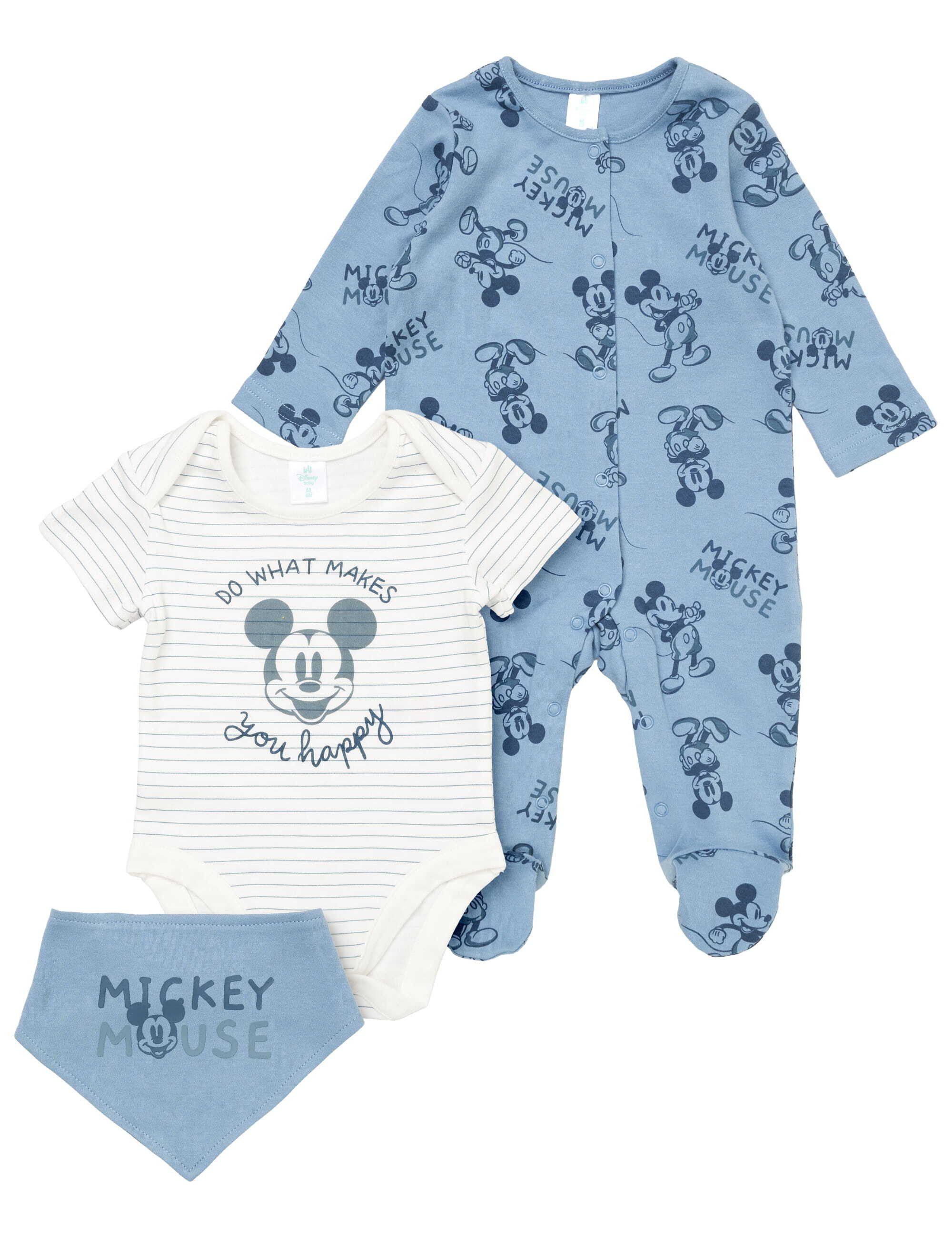 Dieses bezaubernde Set beeindruckt durch seine herausragende Qualität und das besonders weiche Material, das für optimale Atmungsaktivität, eine hervorragende Passform und angenehmen Tragekomfort sorgt. Dein Baby wird sich darin rundum wohl und geborgen fühlen. Das liebevolle Design und der moderne Materialmix machen dieses Set zu etwas ganz Besonderem. Der gestreifte Kurzarmbody mit fröhlichem Mäuse-Print und dem Schriftzug „Do what makes you smile & happy“ bringt gute Laune ins Baby-Outfit. Der langärmelige Strampler mit Allover-Print sorgt für einen verspielten Look und viel Gemütlichkeit. Abgerundet wird das Set durch das farblich passende Halstuch mit gesticktem Schriftzug – ein rundum bequemes und fröhliches Set für kleine Fans. Auch werden Eltern und Kind das durchdachte Design gleichermaßen schätzen, denn dank der praktischen Anordnung der Druckknöpfe und der elastischen Bündchen wird das An- und Ausziehen erleichtert, und das Wickeln wird zum Kinderspiel. Dieses Set ist auch eine wunderbare Geschenkidee zur Geburt. (C02155-001)