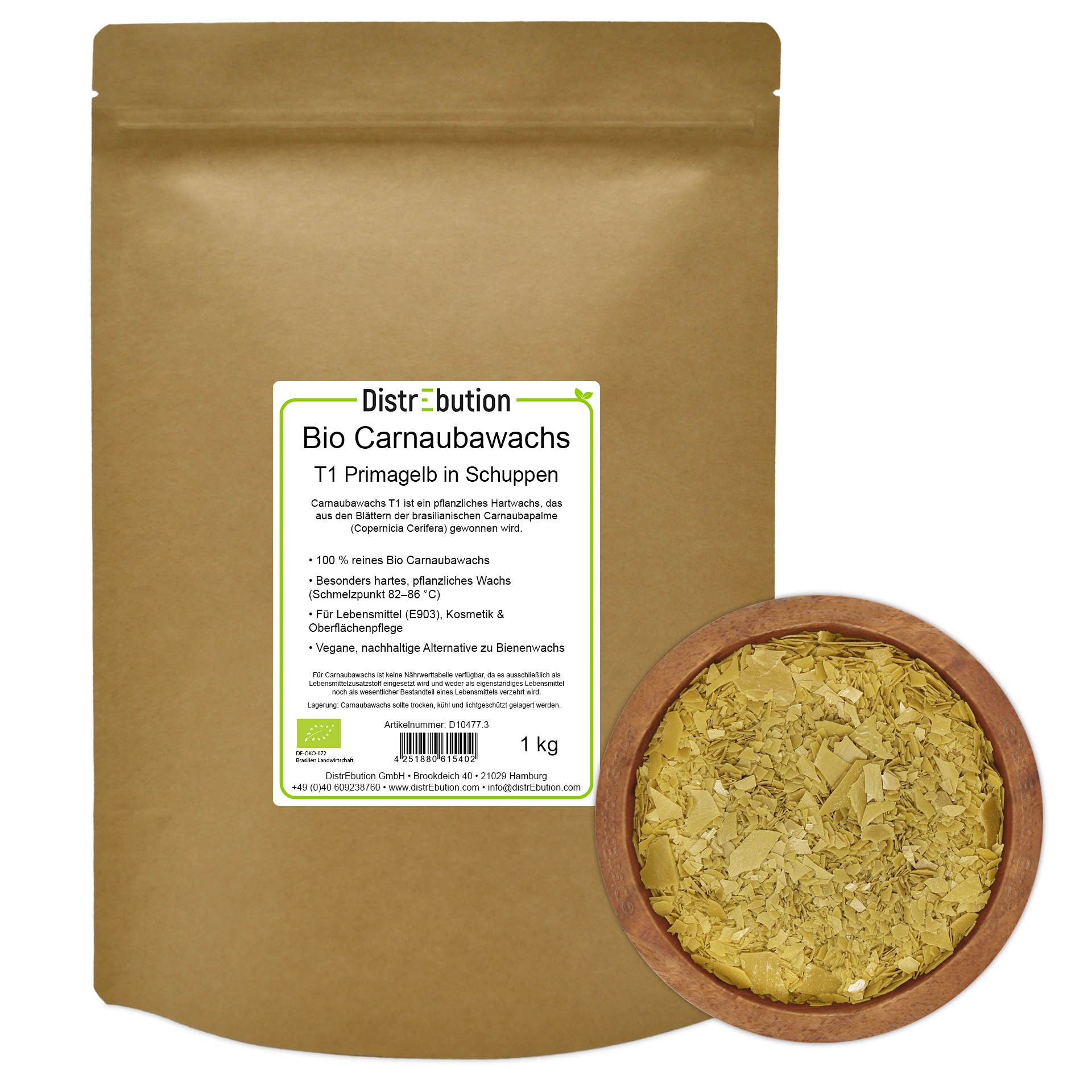 DistrEbution Bio Carnaubawachs T1 – 1kg Veganes Premium-Wachs aus Brasilien E903 Politur (1 St)