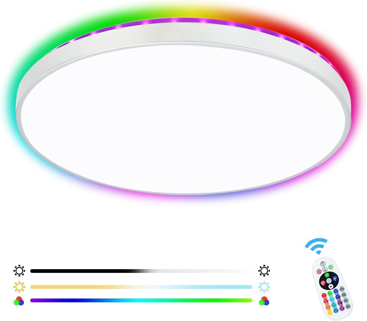 Wählen Sie aus 3 Farbtemperaturen (3000K-6000K) für die perfekte Beleuchtung. Die Helligkeit ist von 10% bis 100% dimmbar, und es stehen 4 verschiedene Dimmstufen zur Verfügung. Diese Deckenleuchte verfügt über eine Speicherfunktion, die Ihre bevorzugten Einstellungen beibehält.