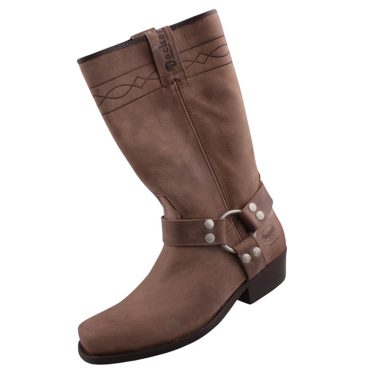 Hochwertige Motorradstiefel aus Nubukleder für Herren und Damen. Dieses beliebte Modell ist in der Biker Szene bekannt. Der Fesselriemen mit Nieten besetzt und einem Metallring an der Innen- und Außenseite, prägt den Stiefel. Die Schafthöhe liegt bei ca. 30cm, die Schaftweite bei ca. 36 cm. Das weiche, textile Innenfutter im Fußbereich, sowie das Leder im Schaftbereich bietet höchsten Tragekomfort, der sich bei der stabilen Synthetiksohle, mit einem 4 cm Absatz fortsetzt.