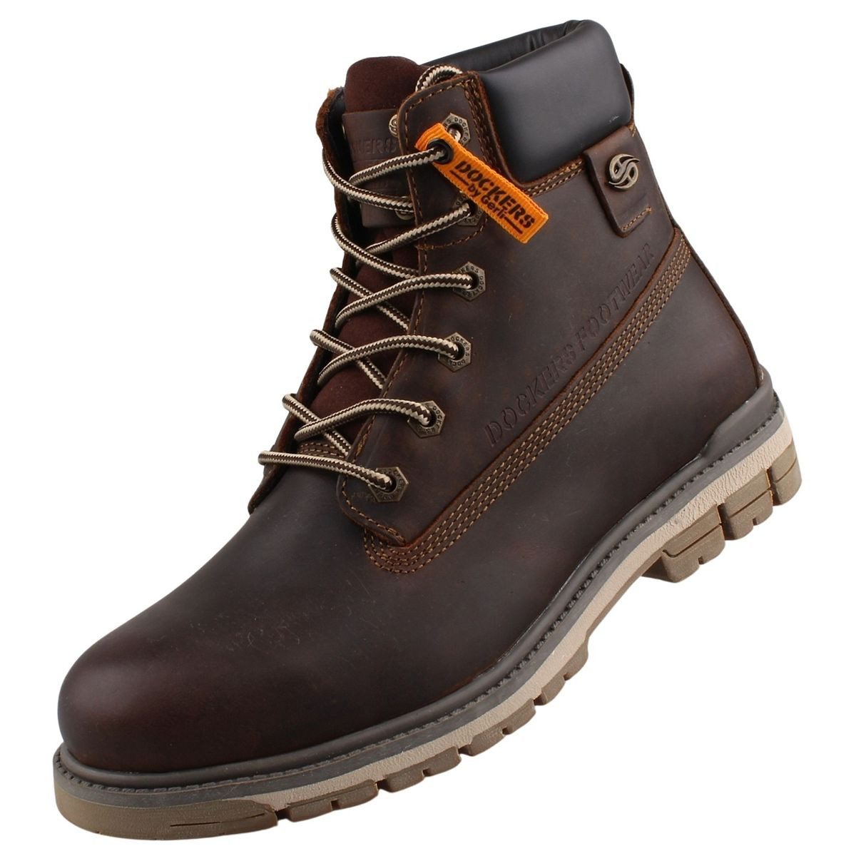 Robuste Herren-Boots / Wanderstiefel aus hochwertigem Fettleder. Durch den weich gepolsterten Schaft und die textile Innenausstattung ist dieser Stiefel angenehm zu tragen und wird ihnen viel Freude bereiten. Dieses Modell hat eine herausnehmbare Decksohle. Schafthöhe ca. 14 cm. Die grob, profilierte Synthetiksohle sorgt für festen Stand auch in unebenem Gelände.