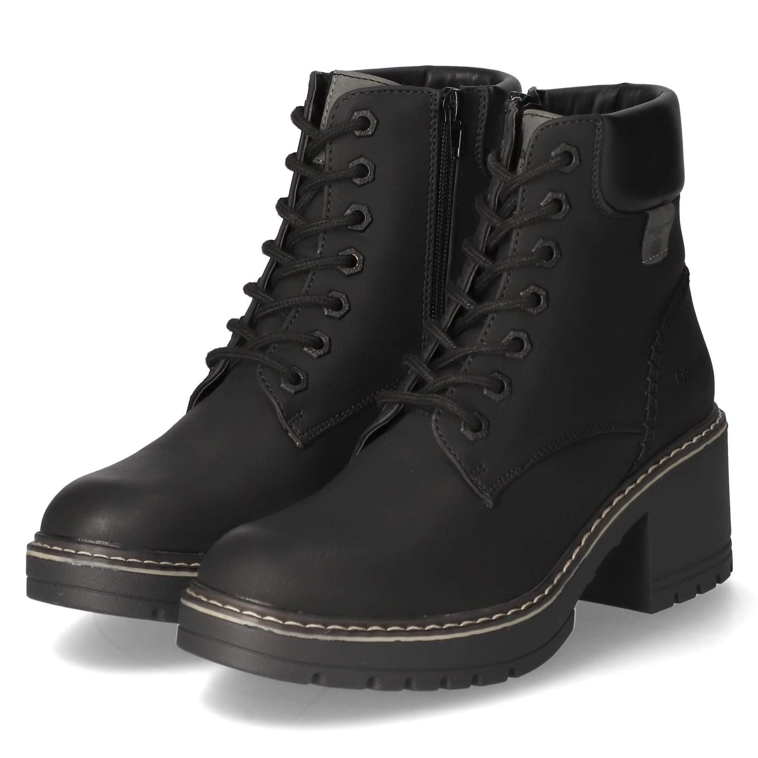 Die Kombination aus Schnürung und Reißverschluss ermöglicht eine individuelle Anpassung und ein einfaches An- und Ausziehen. Die verstärkte Ferse sorgt für zusätzlichen Halt und Stabilität, was den Tragekomfort erhöht und die Langlebigkeit der Stiefeletten verbessert. Eine praktische Anziehlasche erleichtert das Hineinschlüpfen in den Schuh.