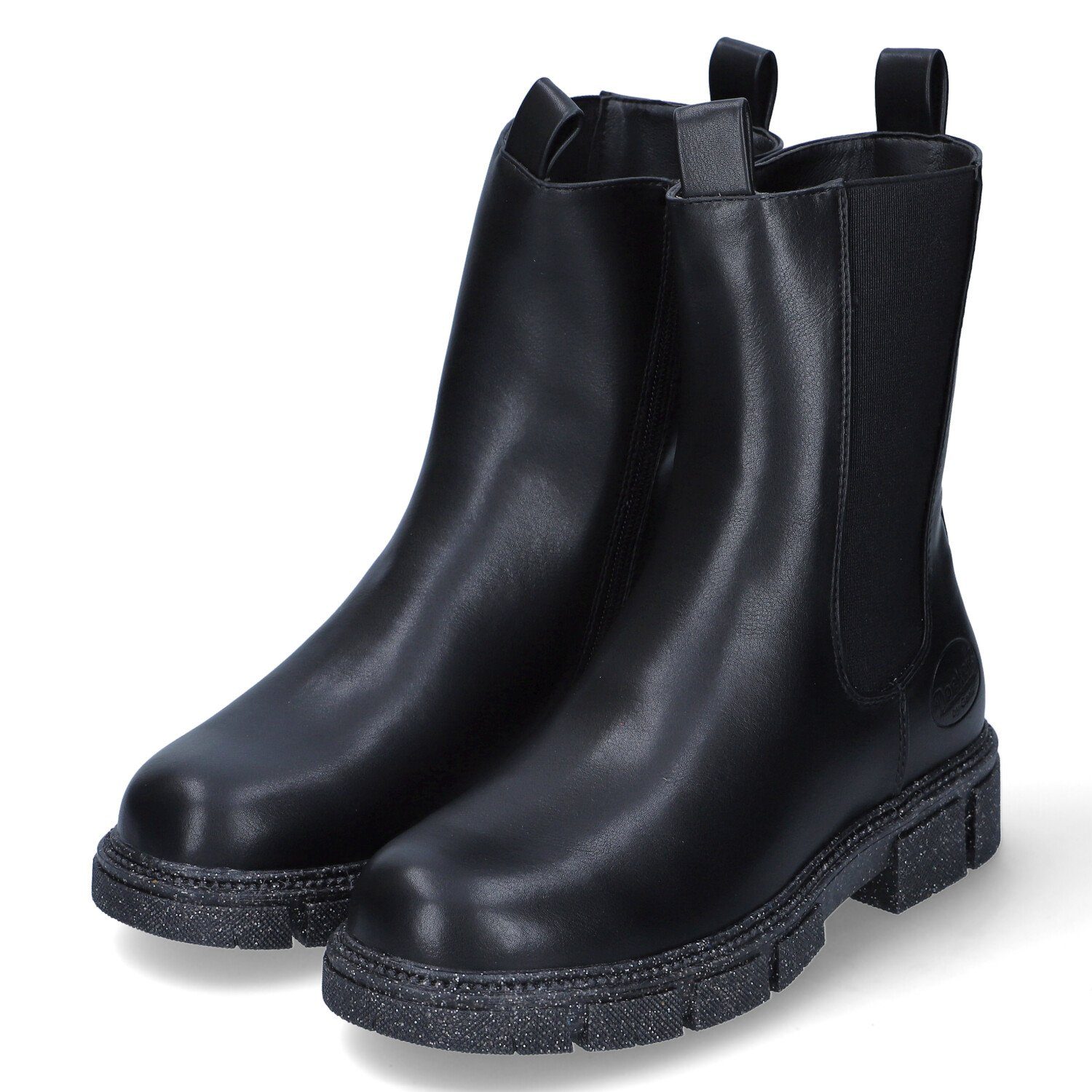 Dockers by Gerli Mädchen Chelsea Boots/ Stiefeletten Schwarz Textil-Synthetik-Mix - Reißverschluss - breiter Elastikeinsatz - zwei Anziehlaschen - warmes Fleecefutter - verstärkter Fersenbereich - Ziernähte - gepolsterte Decksohle - robuste, rutschhemmende Profillaufsohle mit Glitzer - stabiler Blockabsatz - Schafthöhe: ca. 17cm - Schaftweite: ca. 27cm