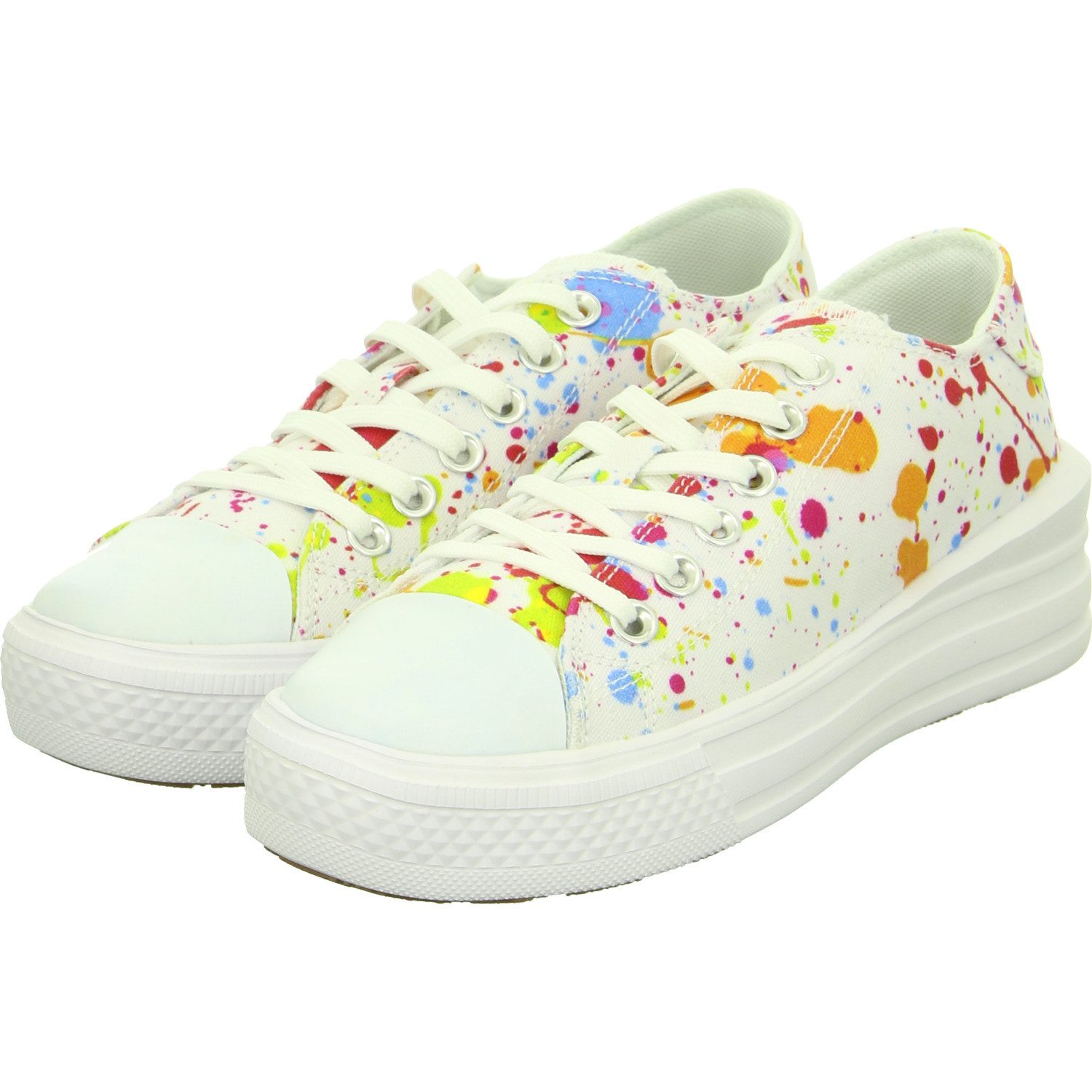 Dockers Damen sportliche Schnürschuhe/ Low Sneaker Weiß Canvas - bunter Kleckseprint - gepolsterte Decksohle - verstärkter Zehen- und Fersenbereich - robuste, flexible und rutschhemmende Cupsohle