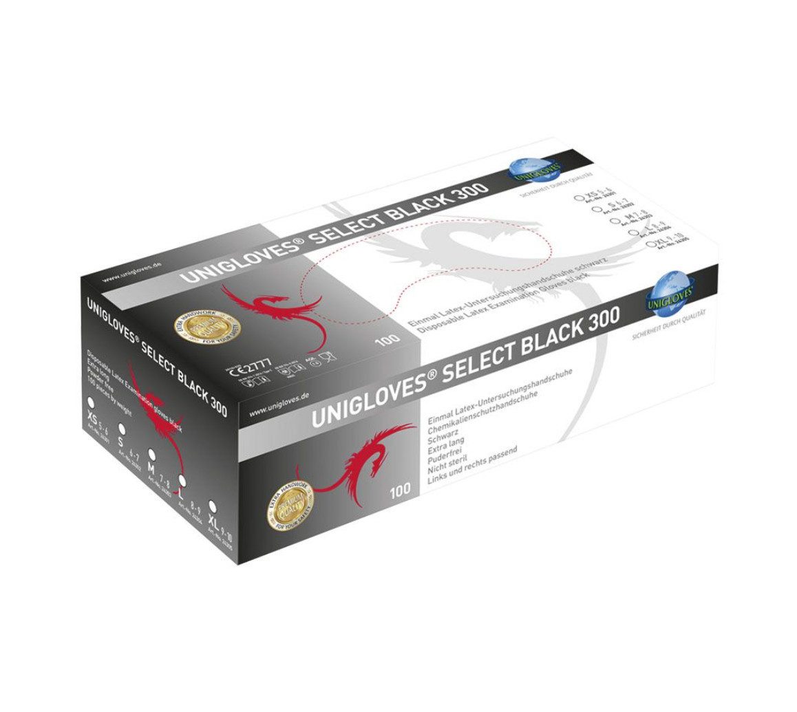 Die Black 300 U.-Handschuhe aus Latex sind hochwertige Einmalhandschuhe, die durch ihre robuste Verarbeitung und komfortable Passform überzeugen. Sie sind puderfrei und dadurch besonders hautfreundlich, was das Risiko von Всеrgien reduziert. Die schwarze Farbe sorgt für ein modernes Erscheinungsbild und macht Verschmutzungen weniger sichtbar, was sie ideal für verschiedenste Arbeitsbereiche macht. Mit einer extra langen Длина von 30 cm schützen sie nicht nur die Hände, sondern auch Teile des Unterarms zuverlässig vor Flüssigkeiten und Schmutz. Die mikrogerautete Oberfläche an der Handfläche garantiert einen sicheren Griff, ohne die Fingerfertigkeit einzuschränken, sodass sich auch feine Arbeiten problemlos ausführen lassen. Der praktische Rollrand erleichtert das An- und Ausziehen der Handschuhe und erhöht den Tragekomfort auch bei längerem Gebrauch. Erhältlich in den Größen XS bis XL bieten sie für jede Hand die passende Passform. Die Handschuhe erfüllen die strengen Anforderungen der EN 455 Normen, was ihre Qualität und Sicherheit bestätigt. Mit einem AQL-Wert von 1,5 sind sie nahezu frei von Materialfehlern und bieten so einen hohen Schutz. Die Handschuhe sind unsteril und lebensmittelzugelassen, wodurch sie auch in der Gastronomie oder Lebensmittelverarbeitung bedenkenlos eingesetzt werden können. Ob im medizinischen Bereich, Labor, in der Reinigung oder Werkstatt – die Black 300 U.-Handschuhe bieten verlässlichen Schutz und eine professionelle Optik. Ihre Kombination aus Langlebigkeit, Komfort und Funktionalität macht sie zu einem unverzichtbaren Begleiter für alle, die Wert auf Sicherheit und Hygiene legen.