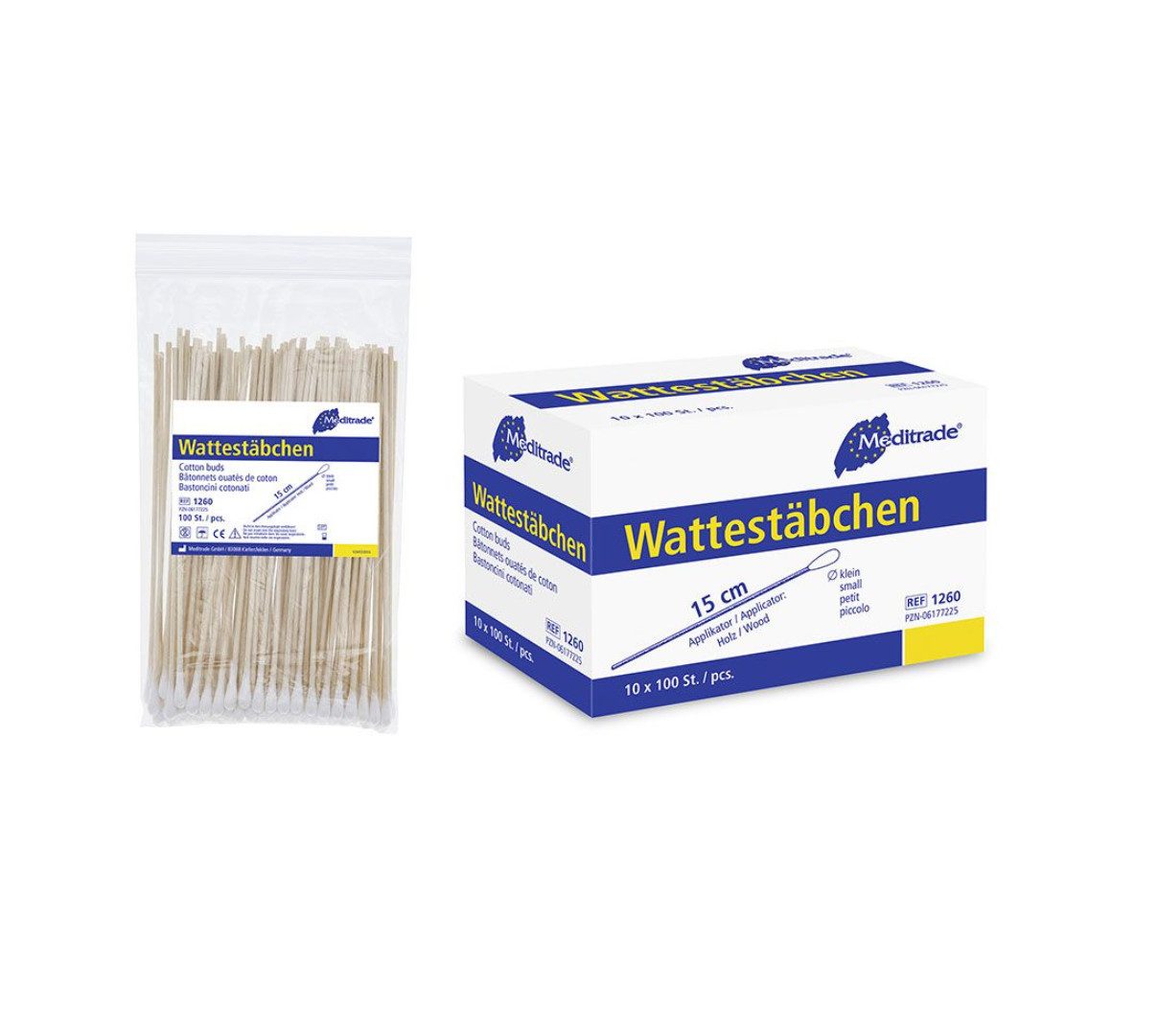 Wattestäbchen mit 15 cm Длина und weichem, 12 x 5 mm großem Wattekopf aus hochwertiger Baumwolle für präzises Reinigen und Auftragen von Flüssigkeiten und Salben.