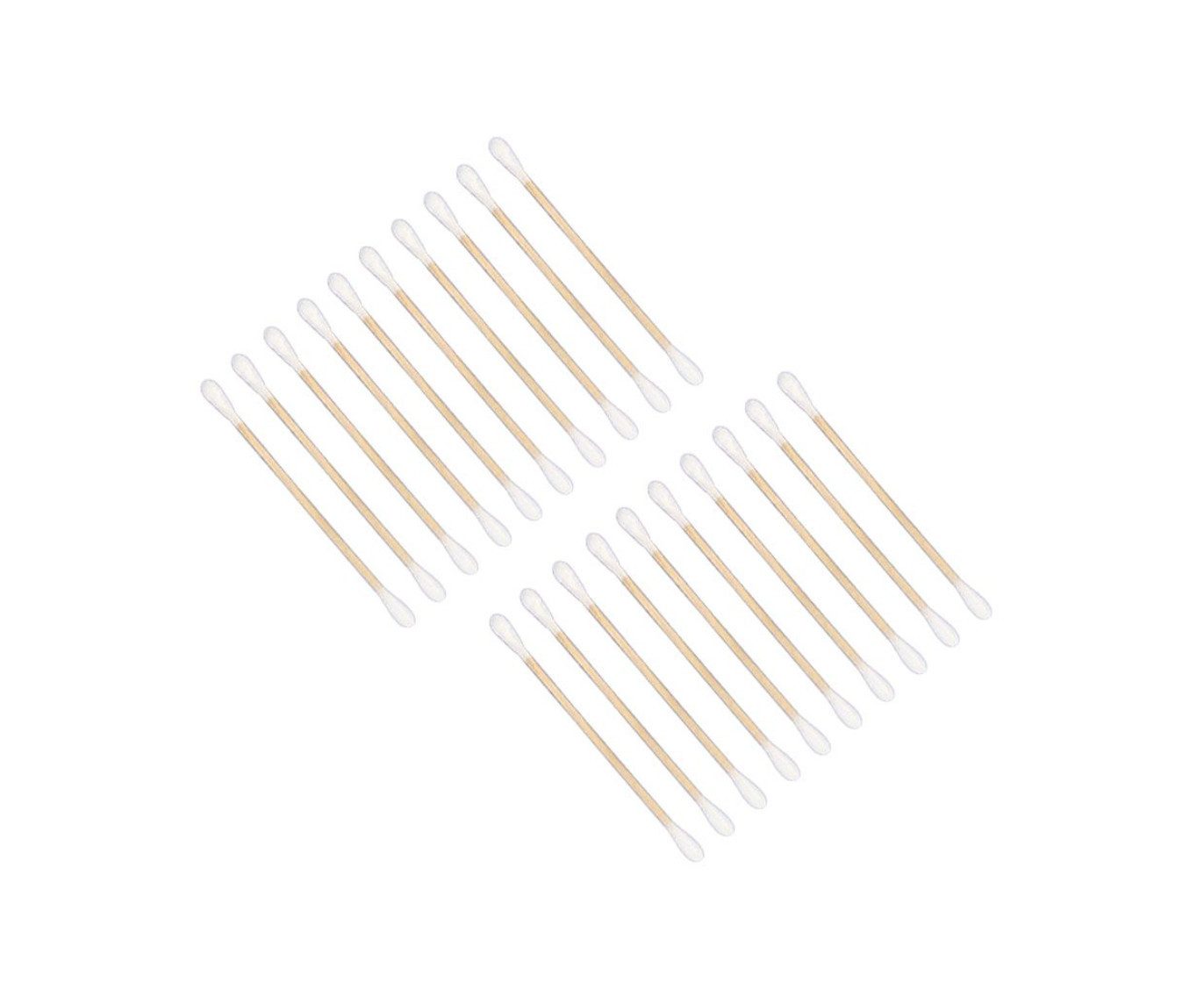 7 cm lange Holzstäbchen mit 2,2 mm Durchmesser und beidseitig festgedrehtem Wattekopf (Ø 4 mm) für sichere, präzise Anwendungen in Medizin, Kosmetik und Pflege.