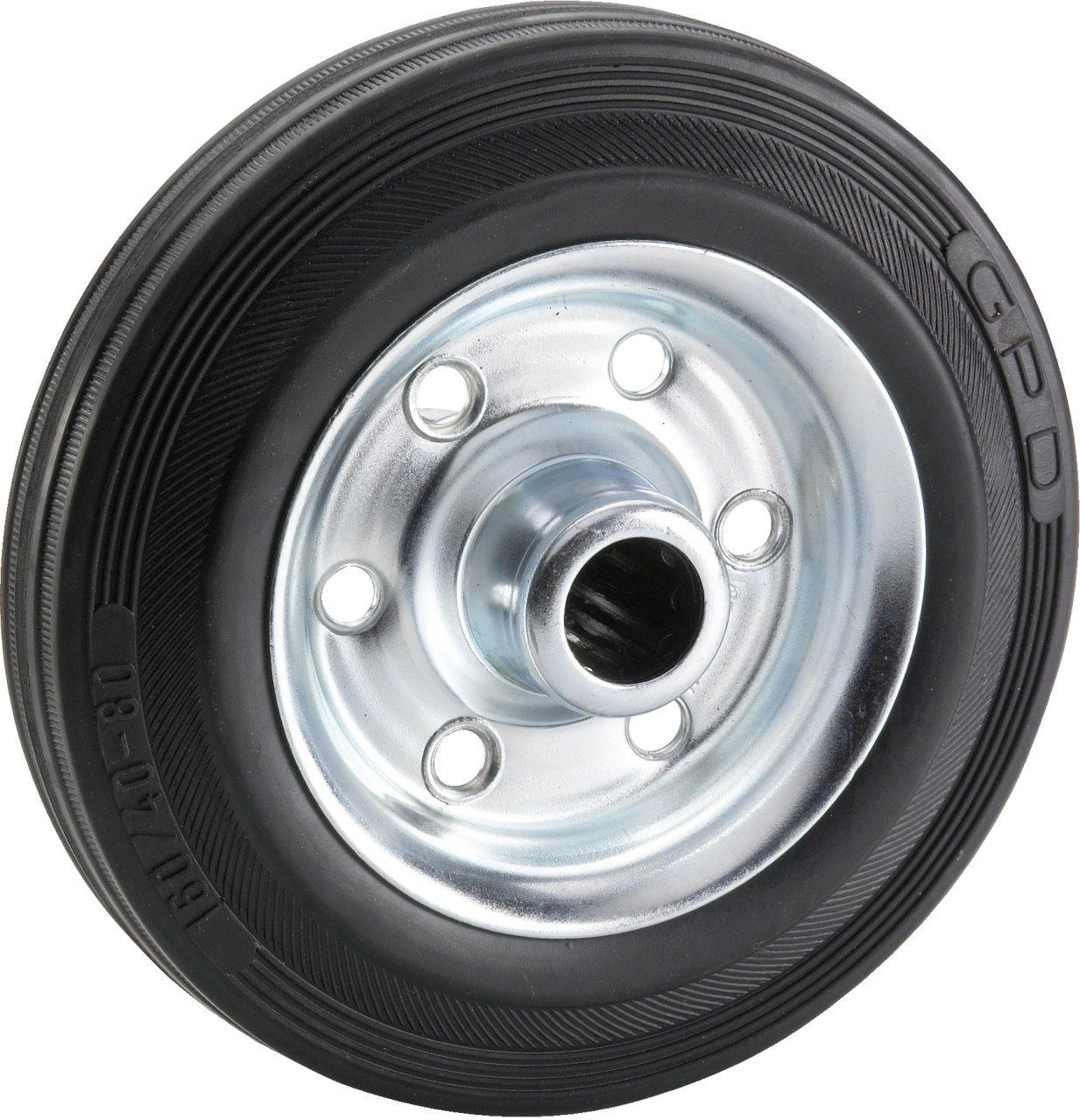 Produktdetails: Raddurchmesser: 100 mm | Radbreite: 30 mm | Traglast: 70 kg | Bohrung: 12 mm | Nabenlänge: 40 mm | Radlagertyp: Rollenlager | Material Felge: Stahl | Material Lauffläche: Gummi |