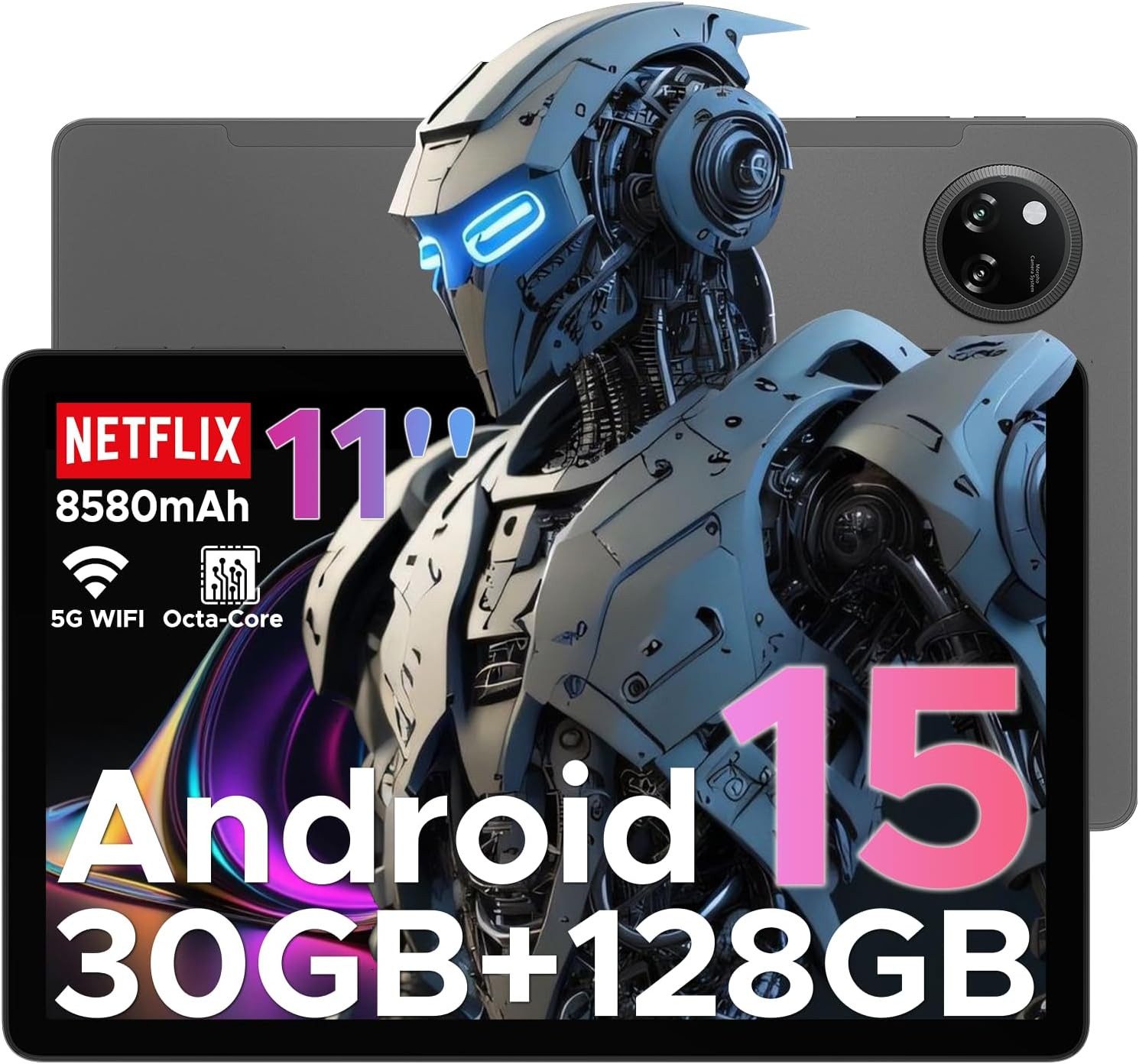 Android 15 Tablet 11 Zoll 6 GB RAM +128GB ROM (2TB TF) Unisoc T7200 Octa Core Tablets PC, 8580mAh Gaming Tablet Android,13MP+5MP/WiFi 5/WidevineL1 /GPS/Face ID/OTG