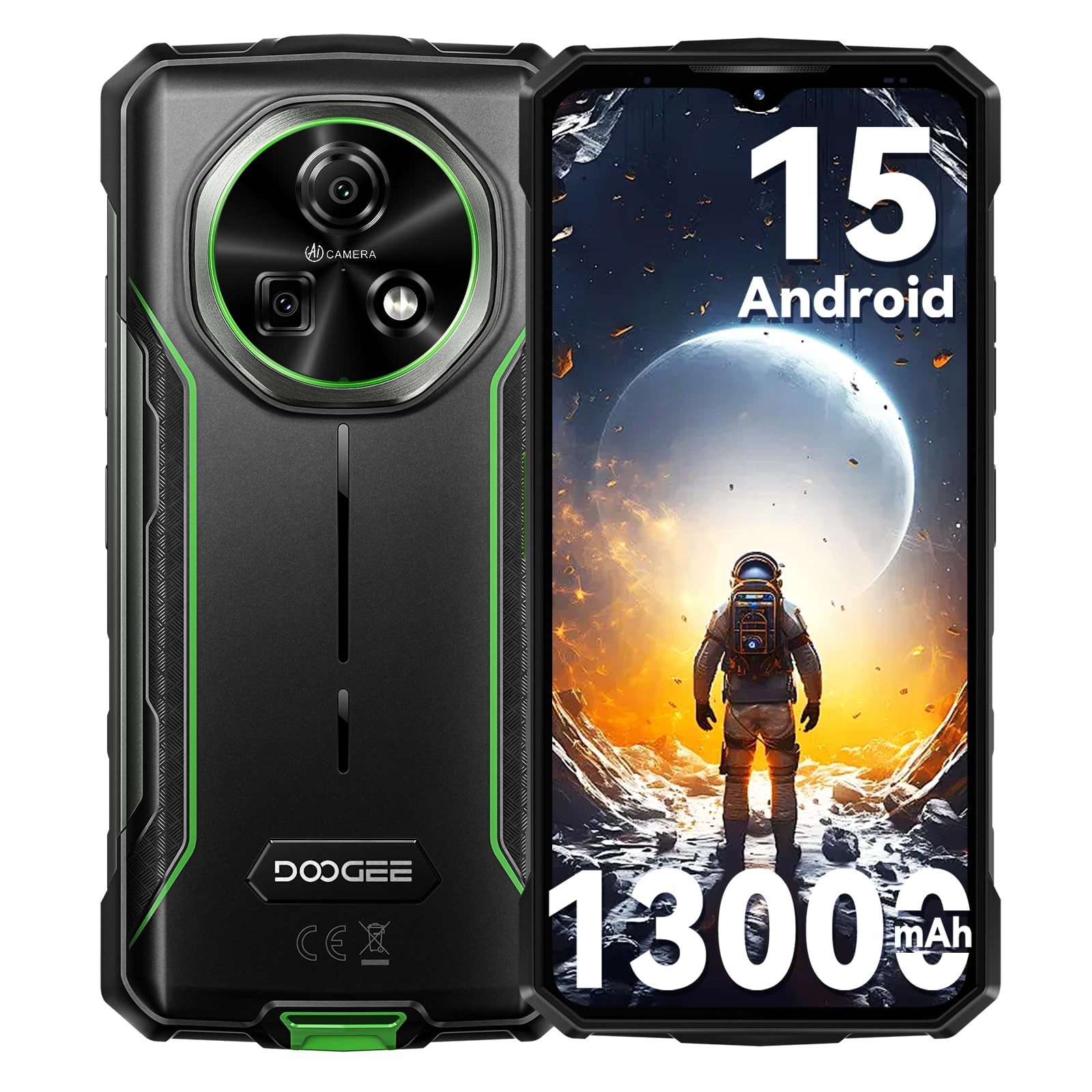 DOOGEE Fire 5 Smartphone Ohne Vertrag Android 15 Outdoor Smartphone – 12GB RAM (3GB physisch + 6GB virtuell) + 64GB ROM (bis 2TB TF-Erweiterung), Android 15 Handy | 6,6" HD+ 90 Hz IPS-Bildschirm Baustellenhandy, 13000mAh Akku mit 10W Schnellladung | 13MP Hauptkamera + 8MP Frontkamera, 4G Dual SIM, Face Unlock | IP68 wasserdicht, NFC/OTG/GPS