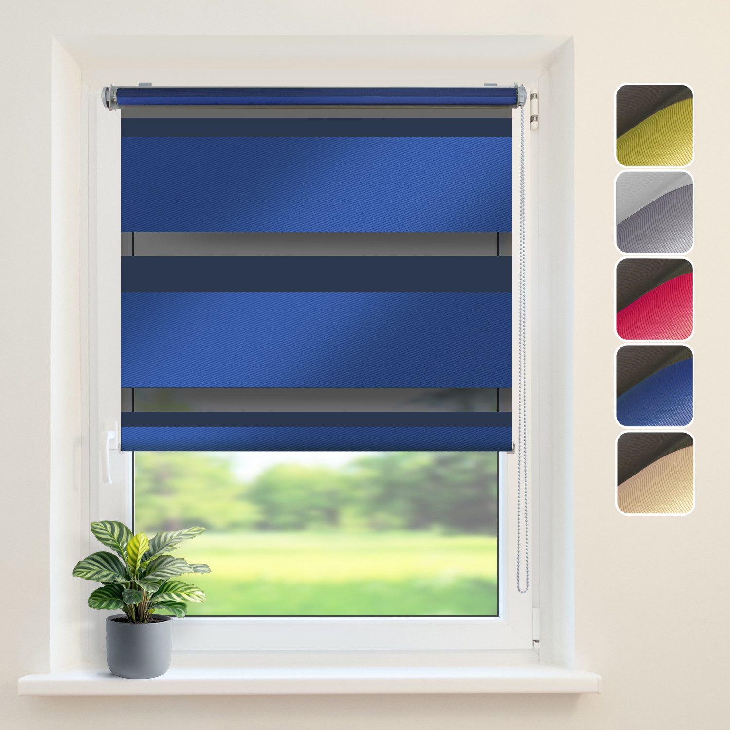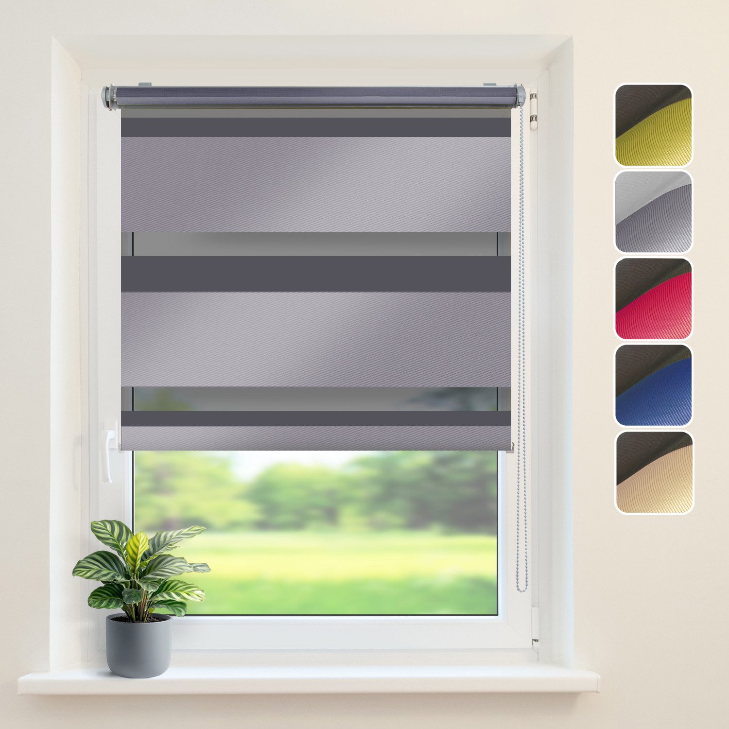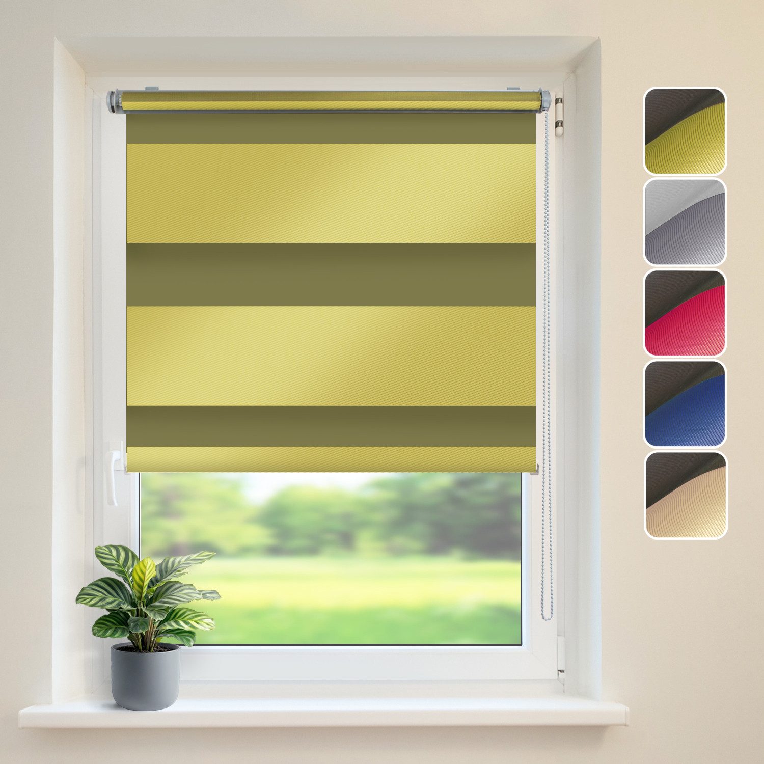 Die farblichen Streifen sind mit ca. 7,5 cm Höhe etwas größer als die ca. 5 cm hohe lichtdurchlässigen Streifen. Blickdichter Sichtschutz garantiert.