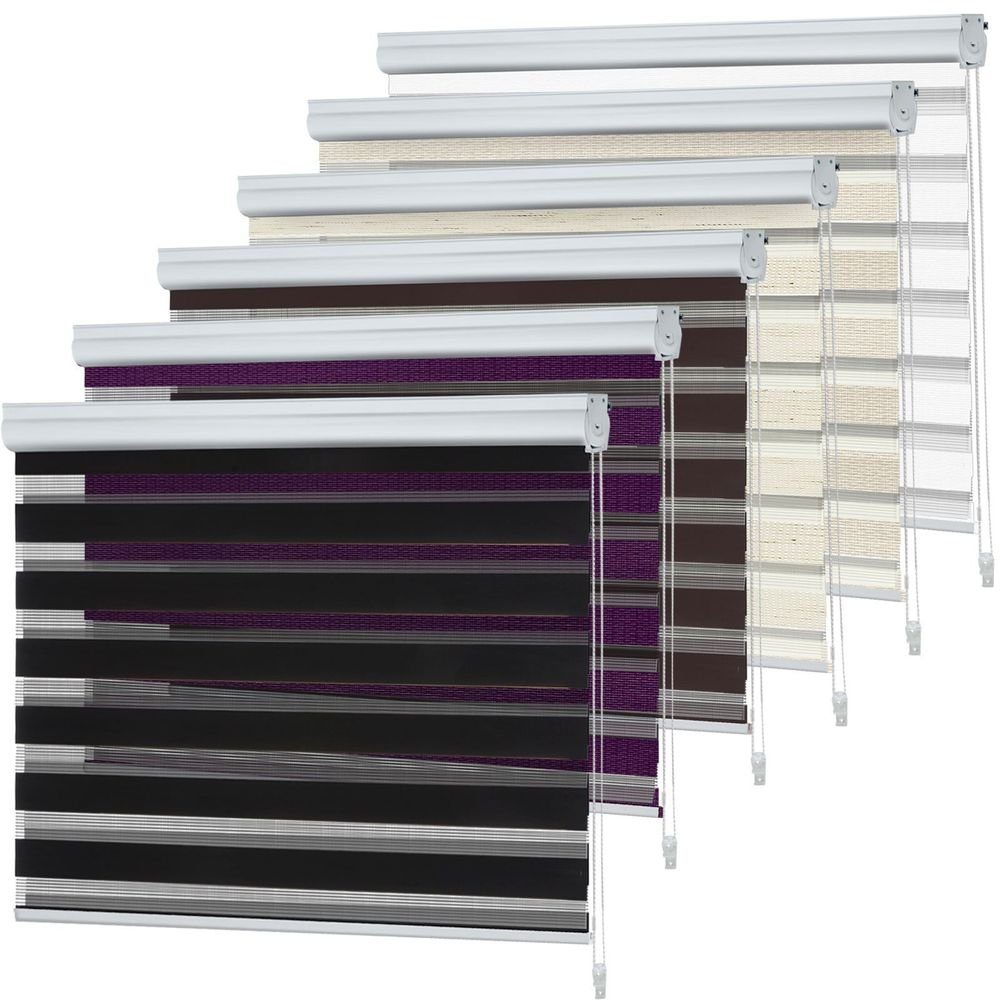 Das Doppelrollo mit Kassette kann auf eine maximale Длина von 150 cm ausgerollt werden und ist in unterschiedlichen Breiten erhältlich. Die aus widerstandsfähigem Polyester bestehenden Stoffbahnen verlaufen parallel und ermöglichen dadurch den Wechsel des Helligkeitsgrades in einem Raum. Gleichzeitig hat dieses Wechselspiel auch einen optischen Reiz. Zusätzlich besitzt das Sichtschutzrollo einen Sicherheitsclip an der Kette, in den die Kette eingehängt werden kann. Auf diese Weise ist sie außerhalb der Reichweite von Kindern oder Haustieren. Unfälle und damit verbundene lebensbedrohliche Folgen werden vermieden.