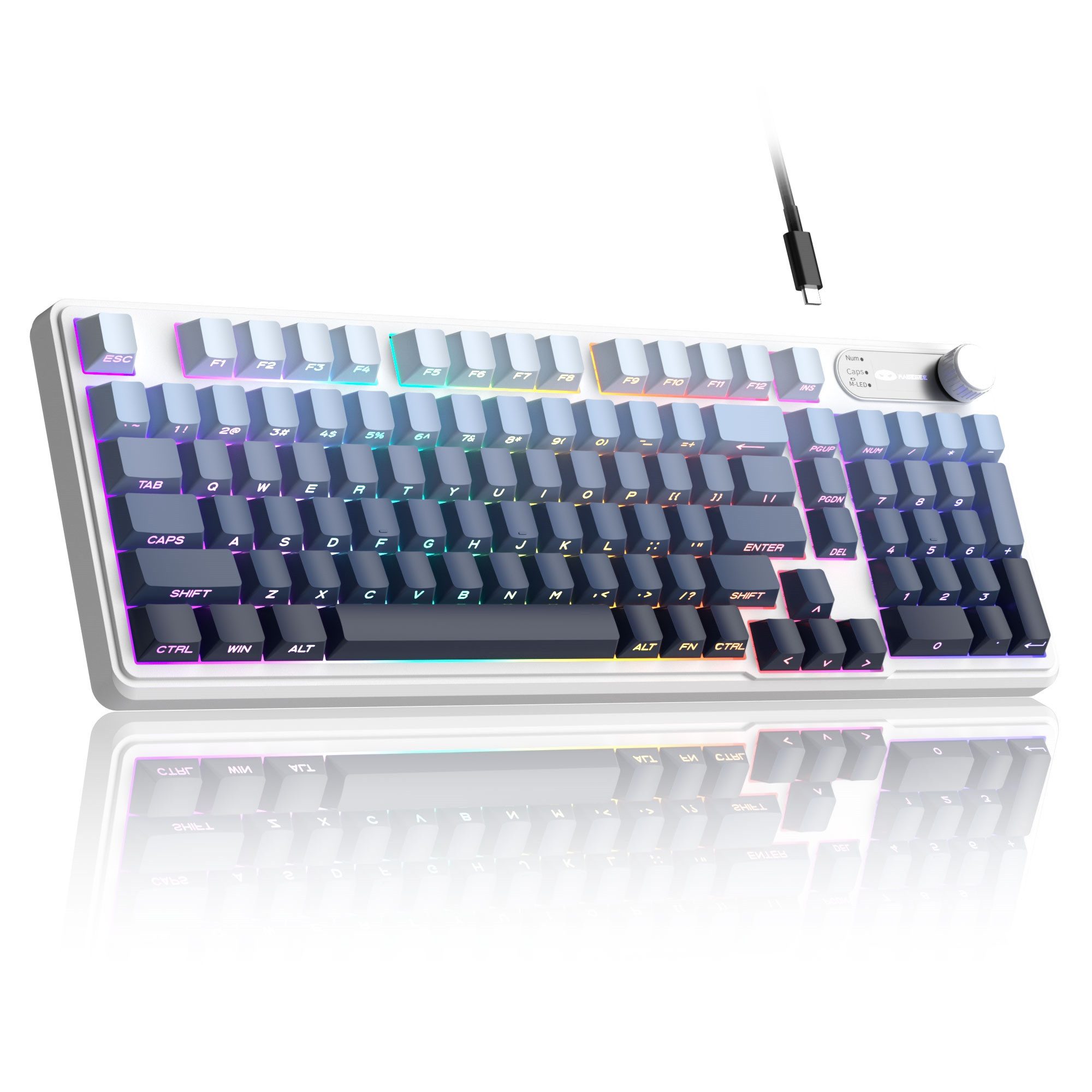 Besondere Merkmale | Seitendruck in Blau-Schwarz,Drehknopf für Lautstärke & Licht,USB-Kabel |