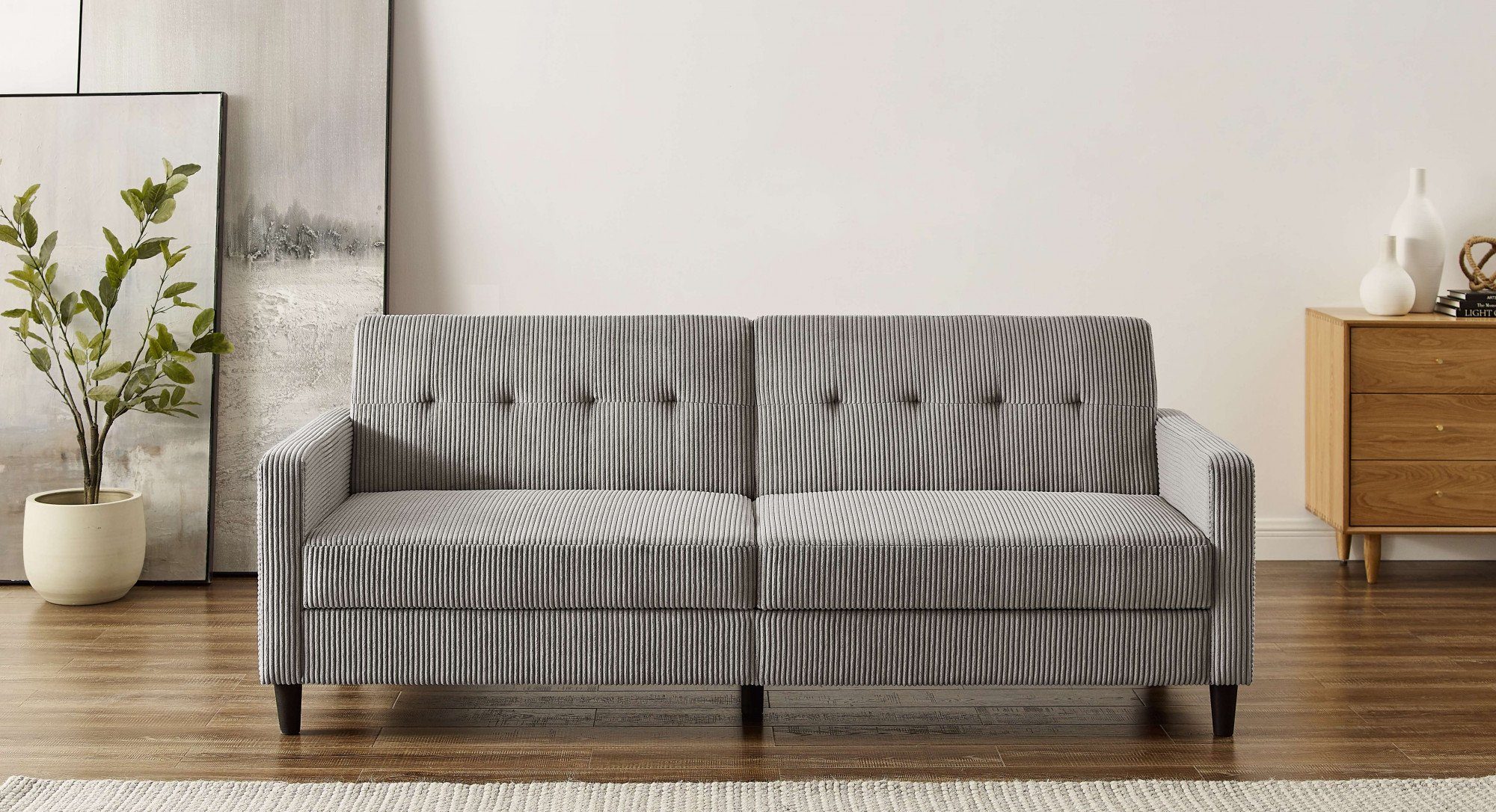 Du fragst dich, wie sich das Möbelstück kombinieren lässt? Hier eine kleine Inspiration für dich: Die Ästhetik des modernen Stils ist reduziert und strahlt eine schlichte Eleganz aus. Noch gemütlicher wird es zum Beispiel mit Wohn-Accessoires in Pastellfarben oder neutralen Farbtönen wie Beige, Anthrazit oder Weiß.