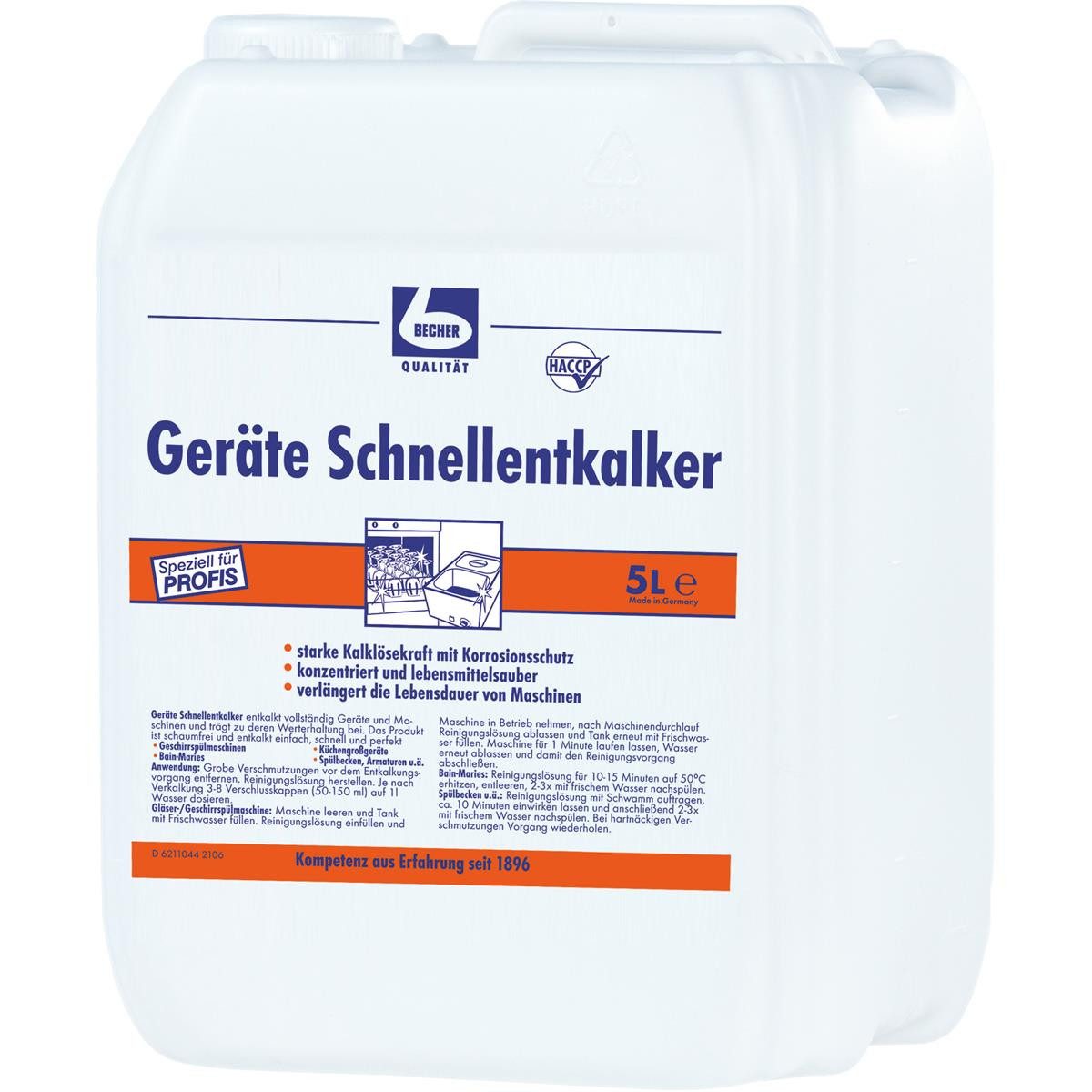 Der Dr. Becher Geräte Schnellentkalker- so einfach gelingt Ihnen die Anwendung des ProduktsDer Dr. Becher Geräte Schnellentkalker ist besonders einfach und dennoch effektiv in der Anwendung. Das Produkt ist ideal geeignet für Geschirrspülmaschinen und Küchengroßgeräte, Bain-Maries, Spülbecken, Armaturen und vieles mehr. Zudem wirkt der Dr. Becher Geräte Schnellentkalker auch rostlösend und schäumt bei der Anwendung nicht. Die effiziente Wirkung basiert auf Phosphorsäure, die für eine effiziente aber dennoch schonende Entfernung geeignet ist.