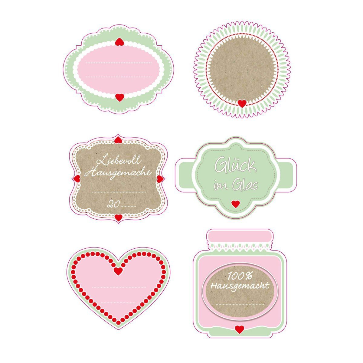 Mit den 24 Gläser-/Einmach-Etiketten (16 x 12 cm) von Dr. Oetker werden Einmachgläser stilvoll schön dekoriert. Die 6 verschiedenen Motive auf 4 Bögen in den Farben Grün, Rot, Rosa, Weiß und Braun sind beschriftbar und lassen sich nach Gebrauch ablösen.