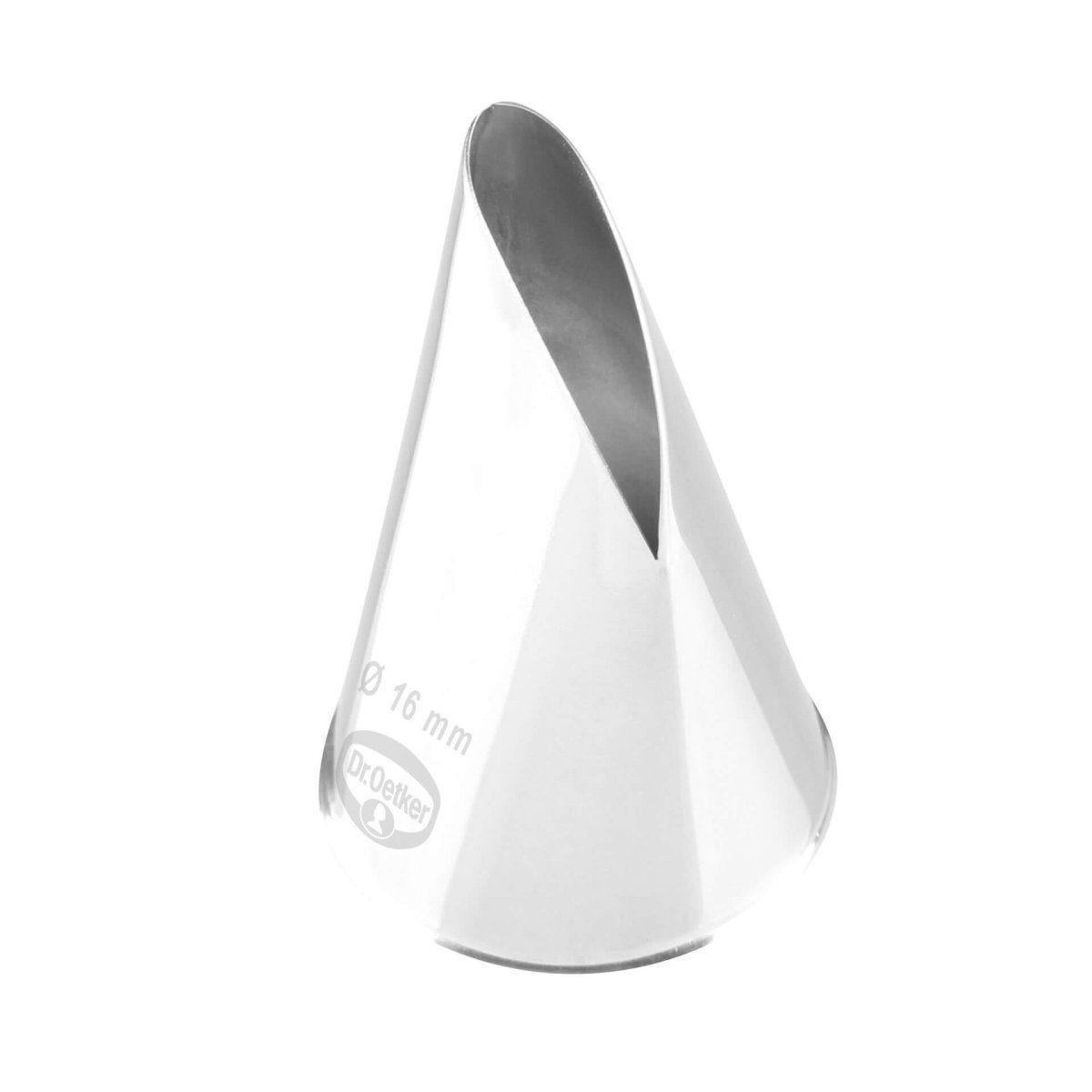 Die Rosentülle von Dr. Oetker (Ø 16 mm) besteht aus hochwertigem Edelstahl und verziert süße Leckereien mit Rosen, einzelnen Blättern oder Krausen. Sie ist aus einem Stück gezogen, ohne störende Naht und ist dabei spülmaschinengeeignet. Die Rosentülle passt sowohl mit, als auch ohne Universaladapter.