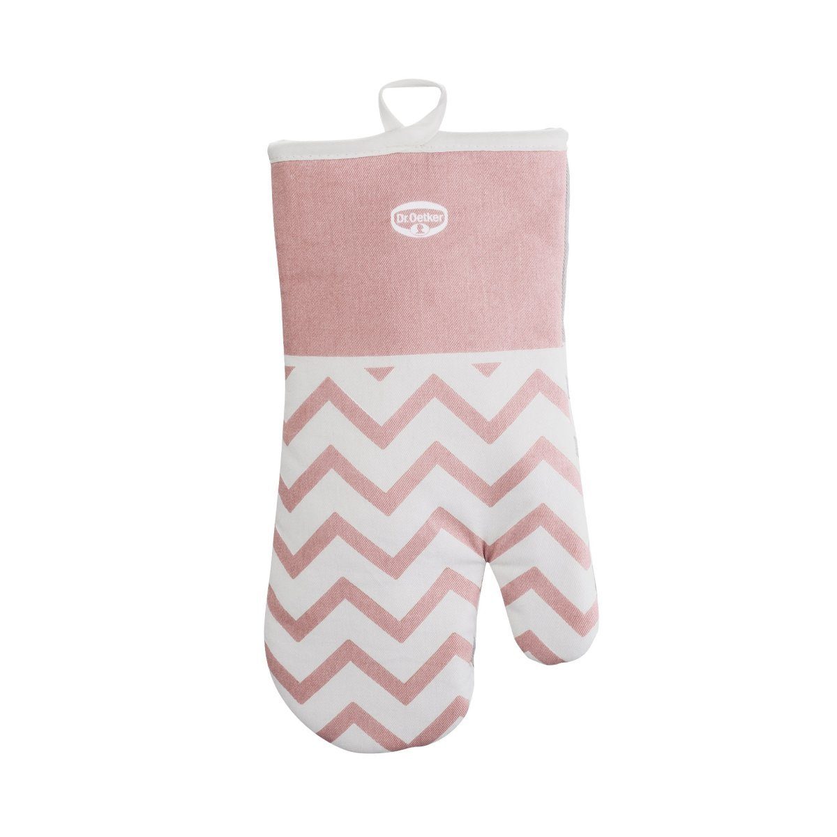 Der Dr. Oetker Back- und Ofenhandschuh im Retro-Design mit extra langem Schaft für das sichere Transportieren und Herausheben von heißen Back- und Auflaufformen oder Herdblechen aus dem Ofen. Innen 100 % Polyester, außen 100 % Baumwolle. Waschbar bis max. 40°C. Farben: Rosa, Weiß, Grau. Größe: ca. 32 x 18 cm.