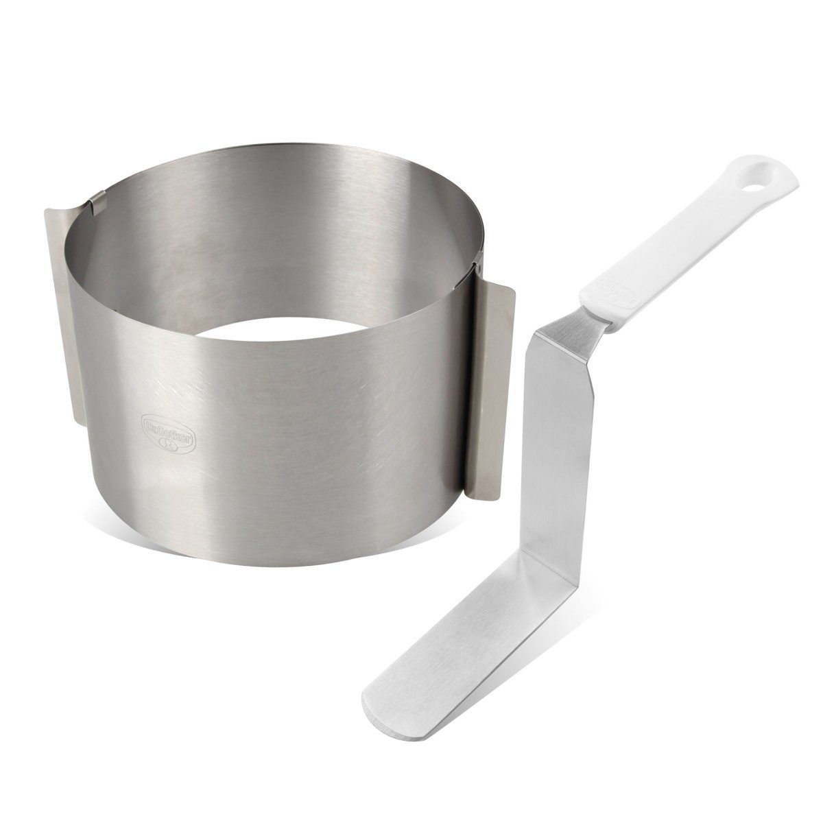• Material: Tortenring: Edelstahl – spülmaschinengeeignet, Winkelpalette: hochwertiger Kunststoff und Edelstahl – spülmaschinengeeignet