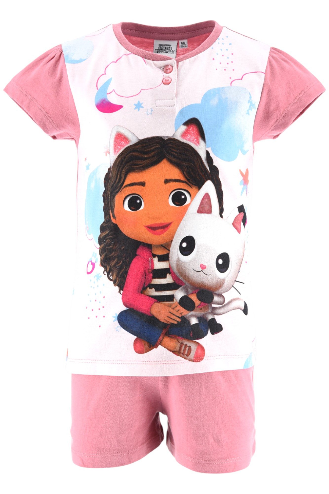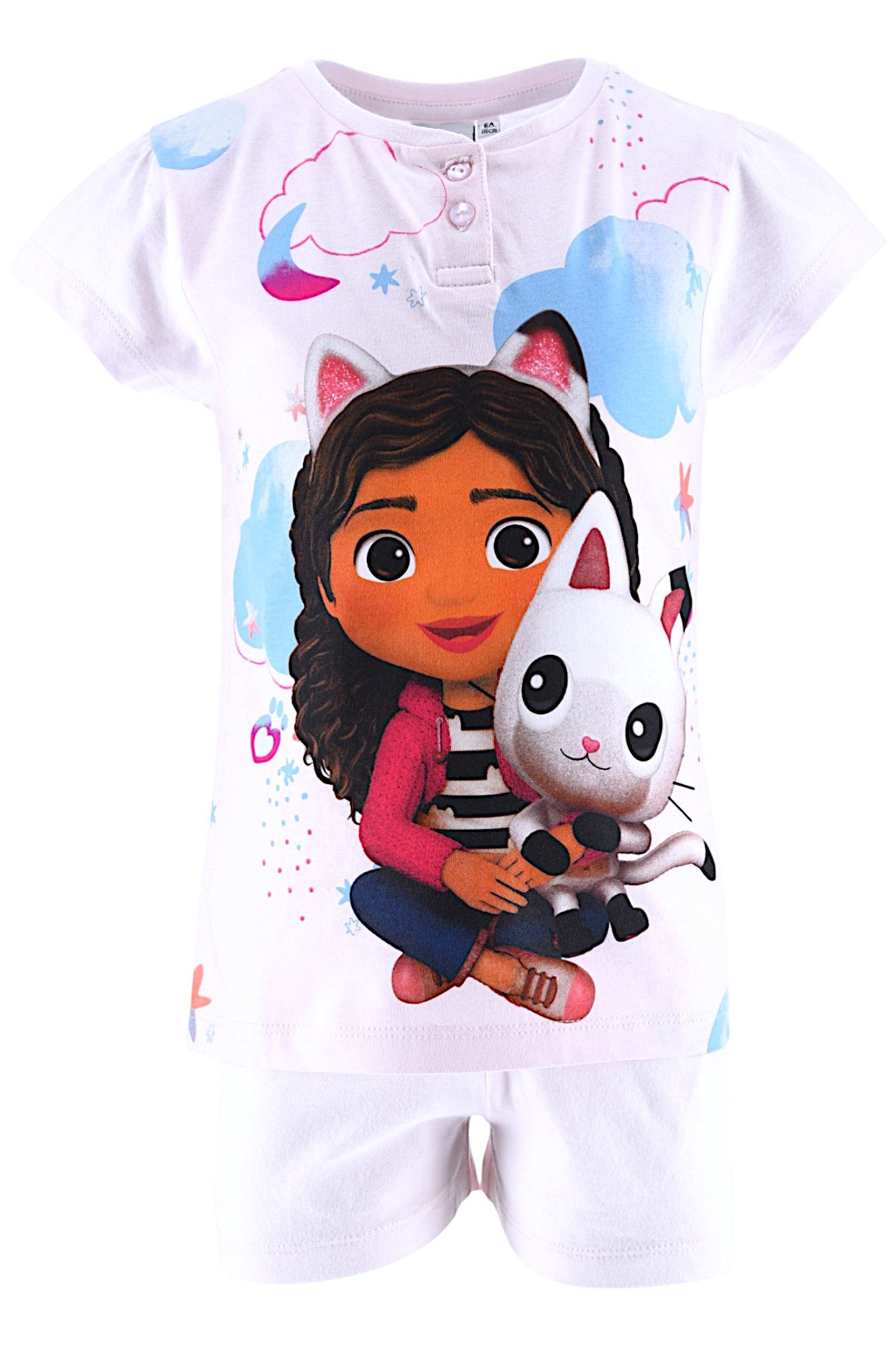 Das rosafarbene Oberteil zeigt Gabby mit ihrer Katze auf einem verspielten Hintergrund aus Wolken, Herzen und Monden und ist mit einer Knopfleiste versehen.