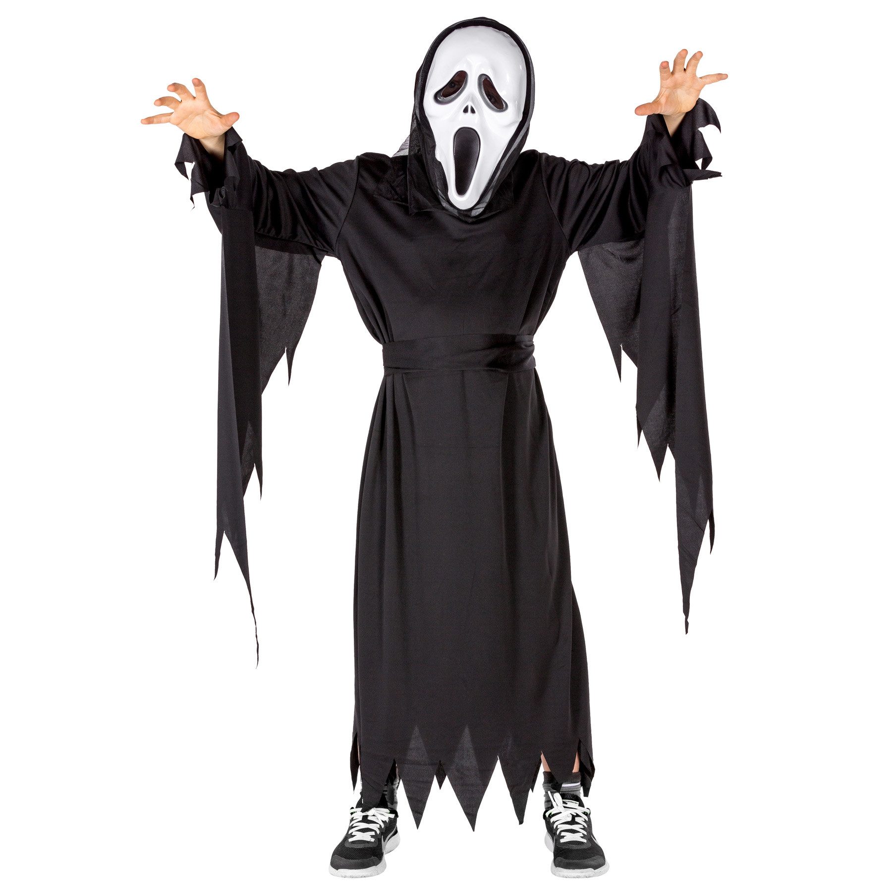 Das Jungenkostüm "Schrei Halloween" ist das perfekte Kostüm für besondere Anlässe und sorgt garantiert für Aufsehen. Mit einem Ganzkörperkostüm und einem langen Gewand verleiht es Deinem Kind einen einzigartigen Look. Details wie die aufregende, gruselige Maske und der praktische Bindegürtel machen das Design besonders auffällig und schaurig.