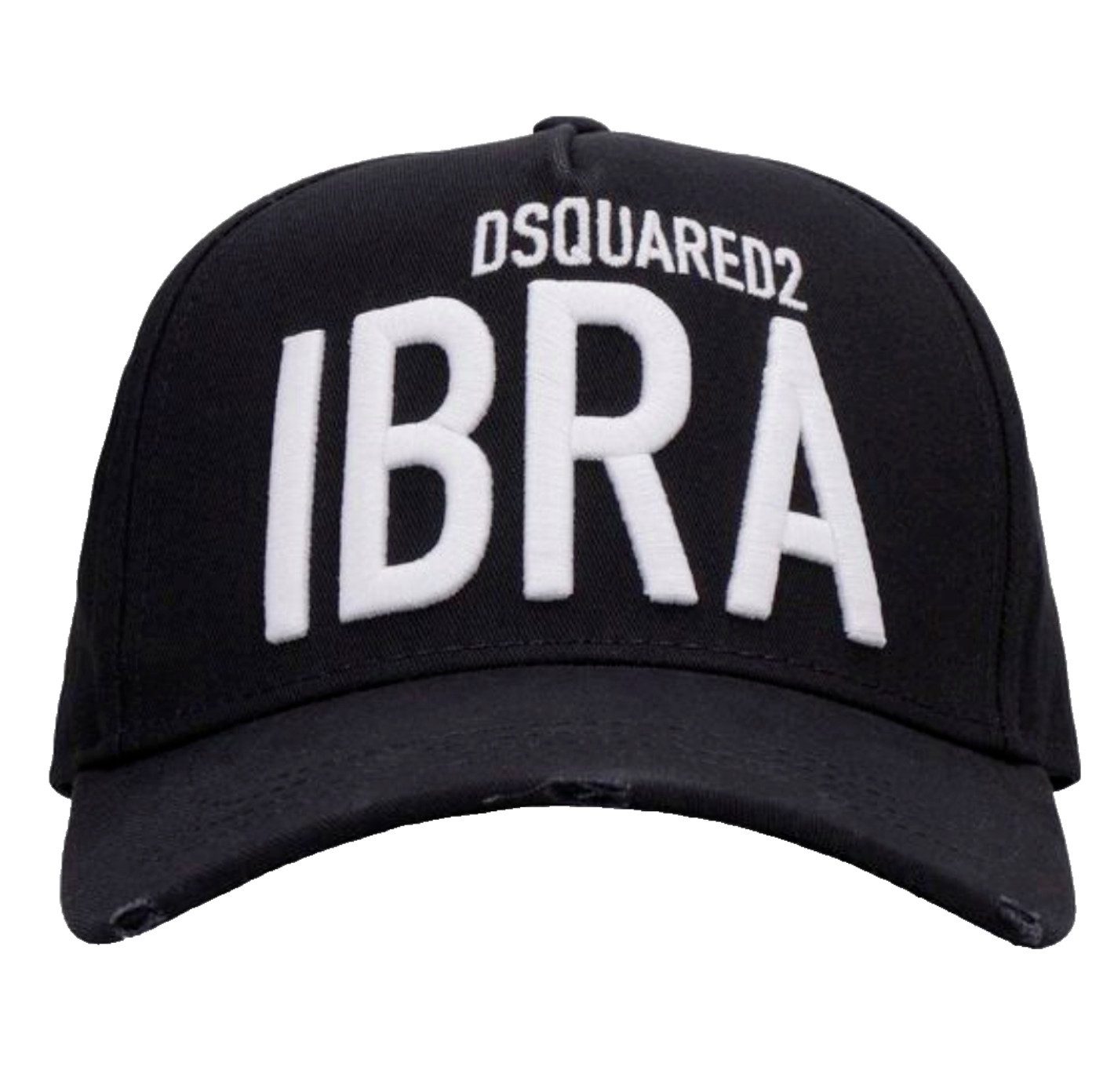 Steigere dein Hut-Spiel mit der Ibra Black on Black Baseball Cap. Diese Kappe ist mit dem Wort 'IBRA' und dem charakteristischen Dsquared2-Logo bestickt, um wirklich aufzufallen. Die Destroyed-Details sorgen für einen lässigen Look.