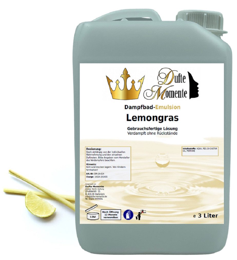 Dufte Momente Duftöl Dampfbad Emulsion Lemongras 3 Liter, gebrauchsfertig, vegan und ohne Tierversuche