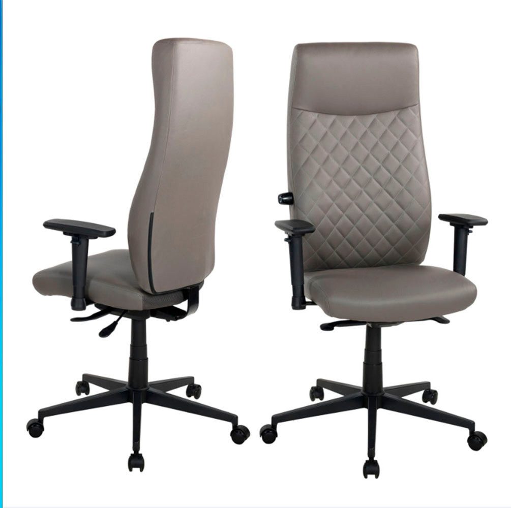Für dauerhafte Konzentration und Sitzkomfort: Dieser Schreibtischstuhl »TEOR« von Places of Style macht das Arbeiten am Schreibtisch angenehmer. Die Synchronmechanik ermöglicht es, dass sich Rückenlehne und Sitzfläche beim Bewegen gleichzeitig und in einem bestimmten Verhältnis zueinander neigen. Das soll den sogenannten "Hemdauszieh-Effekt" verhindern — ein Effekt, bei dem das Shirt beim Назадlehnen durch die Rückenlehne nach oben geschoben wird. Wenn der Stuhl nebenan oder die Tischbeine im Weg sind, ist es gar nicht so einfach Platz zu nehmen. Die Lösung hierzu ist die Drehfunktion, mit der man sich setzen und aufstehen kann, ohne den Stuhl vorher verrücken zu müssen. Auch wenn du länger am Tisch sitzt, bleibt er bequem, denn sowohl die Sitzfläche als auch die Rückenlehne sind angenehm gepolstert. Er hat Armlehnen mit verstellbarer Höhe, sodass du sie dir individuell einstellen kannst, wie es am entspanntesten für dich ist. Er hat eine Rückenlehne, die höhenverstellbar ist, sodass du sie in die für dich richtige Position einstellen kannst. Die Sitzhöhe lässt sich in der Höhe verstellen, sodass sie auf eine beliebige Körpergröße abgestimmt werden kann. So kann er auch von mehreren Personen genutzt werden. Belastbar ist dein neues Möbelstück mit bis zu 110 Kilogramm.