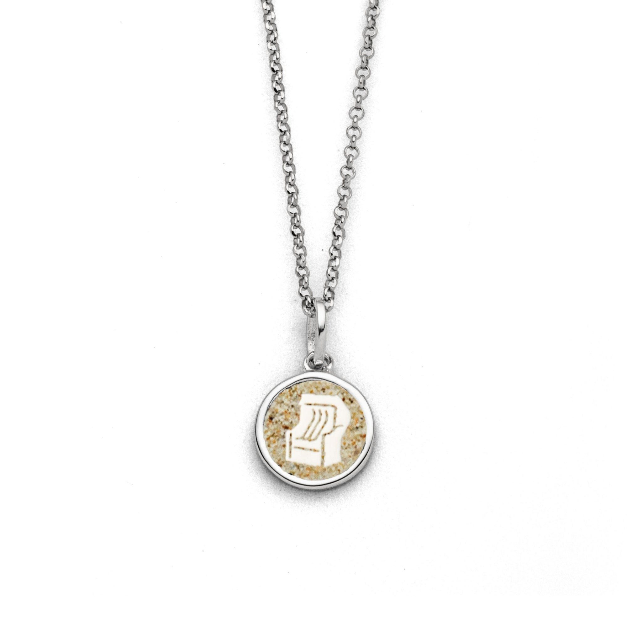 Feine Erbskette von DUR Schmuck, rhodiniert mit einem runden Anhänger, in dem sich ein in Strandsand eingebetteter Strandkorb befindet. Aus poliertem und rhodiniertem 925er Sterling-Silber, ca. 42 cm lang. Durch die Rhodinierung ist das Schmuckstück anlaufgeschützt.