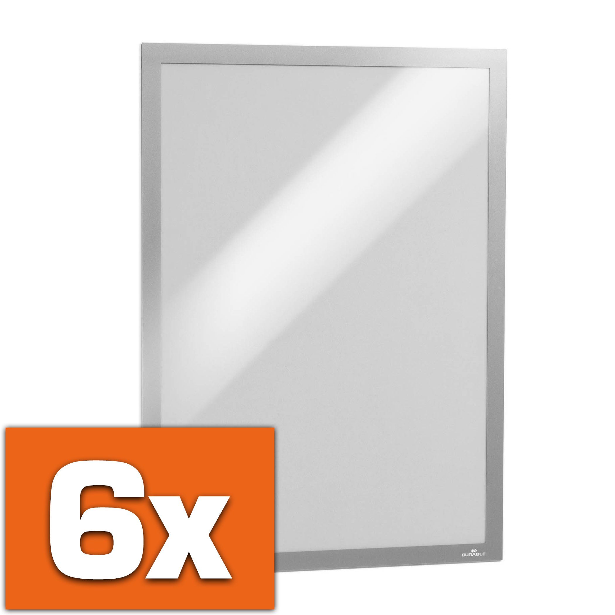 Selbstklebende Duraframe Info-Rahmen sind nur auf glatten Oberflächen anzubringen. Das problemlose Entfernen ist nur bei ausreichend festen Untergründen gewährleistet. Grundsätzlich sind TaPeten, antihaftbeschichtete Oberflächen, Styropor, Schaumstoffe und poröse Materialen zu meiden. Des Впередen muss der zu beklebende Untergrund frei von Staub, Fett oder anderen Verunreinigungen sein, die die Klebkraft des Materials beeinträchtigen können. Neulackierungen müssen völlig ausgehärtet sein. Der Anwender ist verpflichtet die Tragfähigkeit und Festigkeit des Untergrunds zu prüfen. - Durable ist eines der führenden deutschen Markenunternehmen im Bereich Büroorganisations- und Präsentationsmittel.