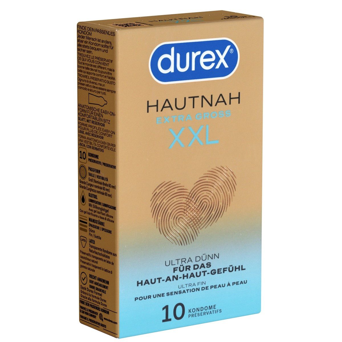 durex XXL-Kondome Hautnah XXL Packung mit, 10 St., ultra dünne Markenkondome mit Easy-On™-Passform