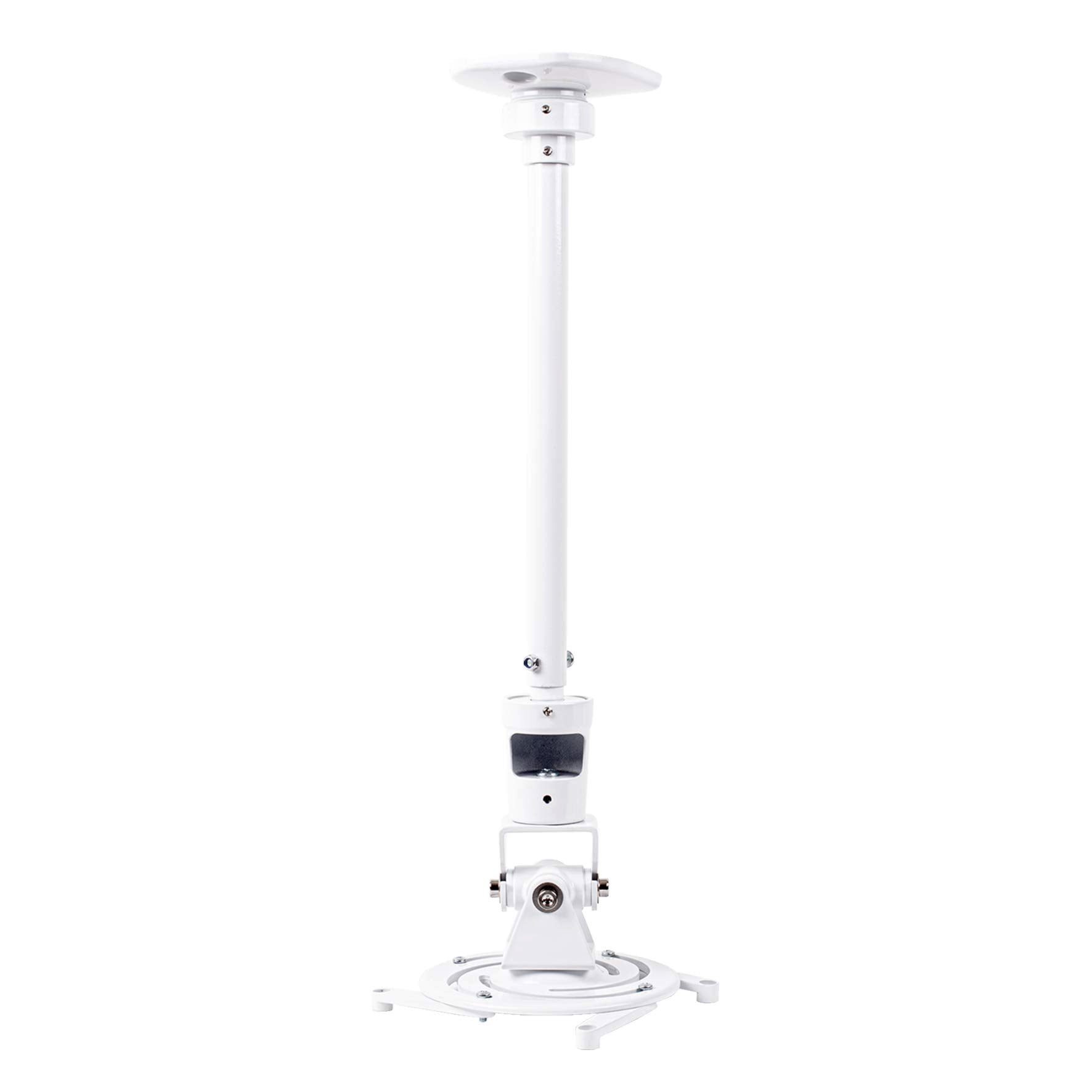 Die Halterung trägt Beamer mit einem Gewicht von bis zu 13,6kg. Diese Deckenhalterung lässt Ihren Projektor in alle 4 Richtungen neigen bzw. schwenken. Eine Neigung bis zu 90° sowie ein Schwenkungswinkel von 40° und eine Rotation von bis zu 360° ist mit diesem Gerät möglich. Diese Einstellungsmöglichkeiten sorgen für den besten Projektierwinkel.Duronic PB08XL ist sehr einfach zu montieren und alle dafür notwendigen Schrauben sowie Werkzeug, die für die richtige Befestigung der verschiedenen auf dem Markt erhältlichen Projektoren notwendig sind, werden mitgeliefert. Nach der Montage beträgt der Decken- bzw Wandabstand zwischen 478mm und 688mm. Unsere Halterungen eignen sich für Beamer mit 3 oder 4 Befestigungslöchern.