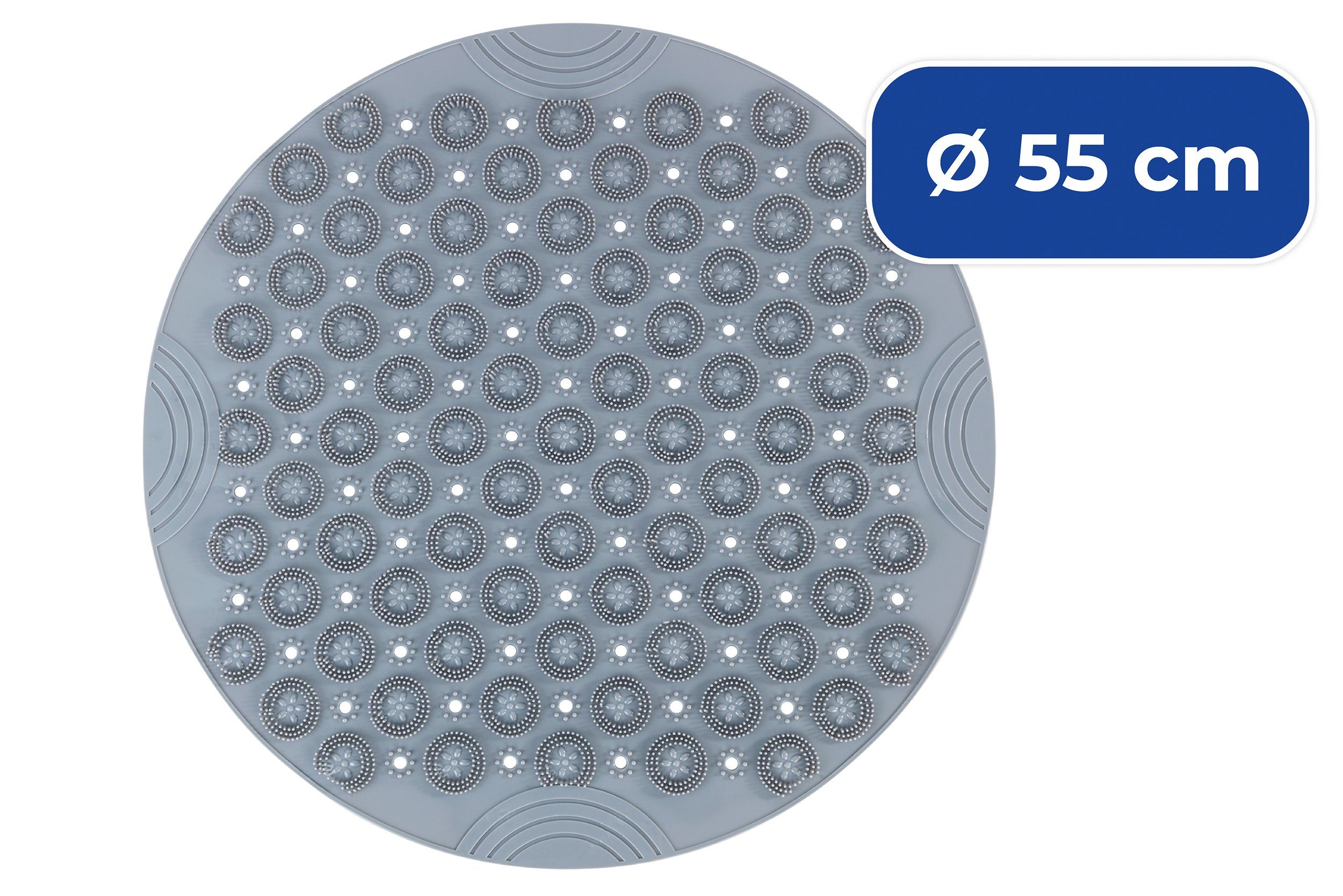 Mit einer Maße von 55 cm Ø passt die effektive Badematte in nahezu jede Dusche und Badewanne